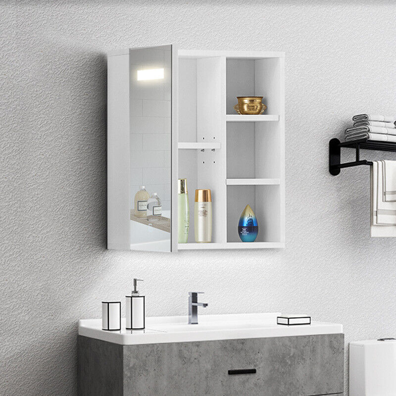 White Bathroom Cabinet Wall Mounted Mirrored LED Door Storage Cupboard w/ Shelf