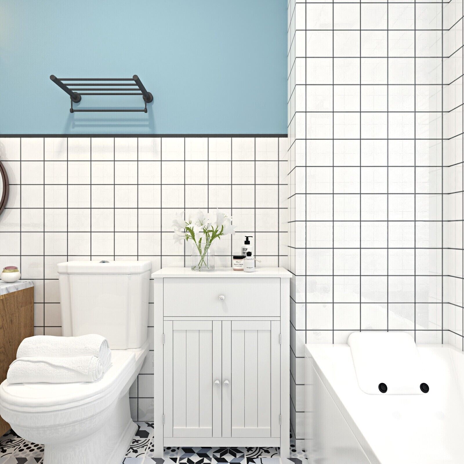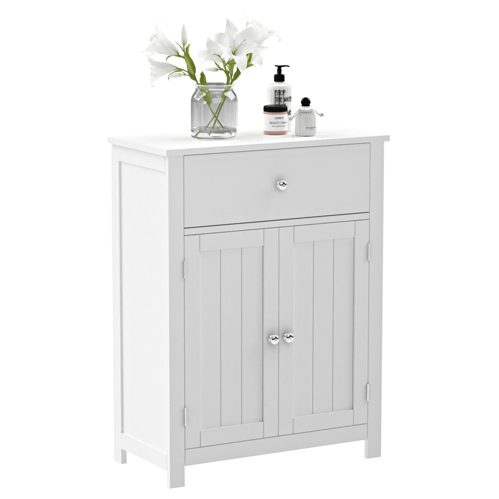 White Bathroom Floor Standing Cabinet Storage Organizer w/ Drawer Double Door UK