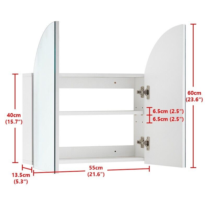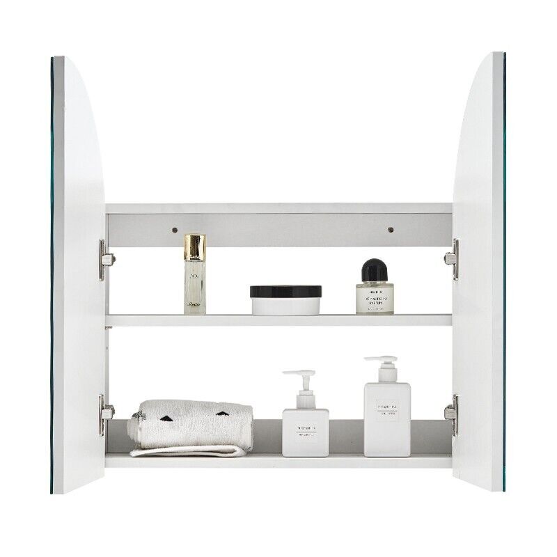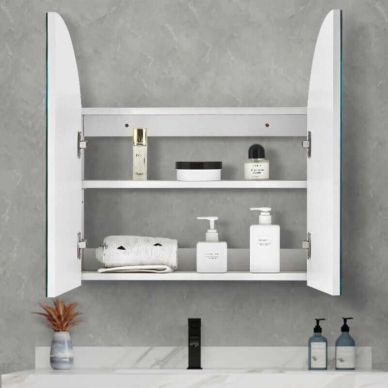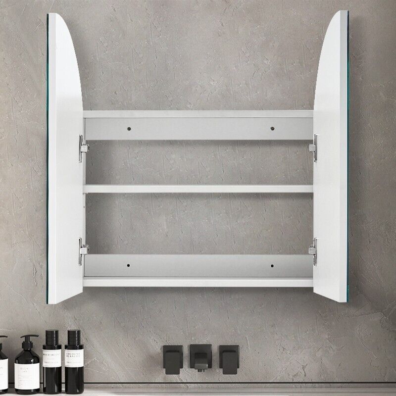 White Bathroom Mirror Cabinet Wall Mount Storage With Shelf 2 Door Cupboard
