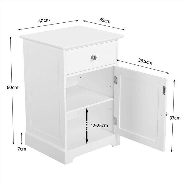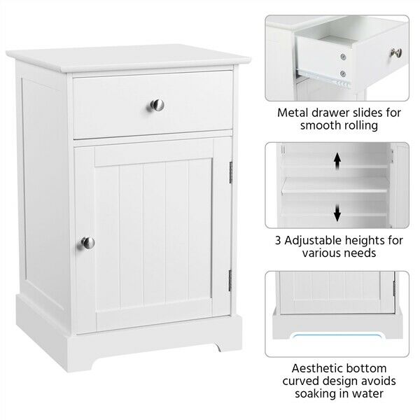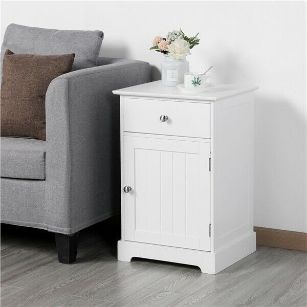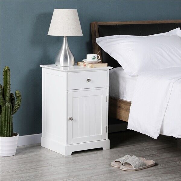 White Bedside Table Bedside Cabinet with Drawer & Door for Bedroom Living Room