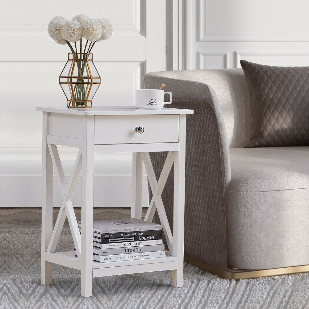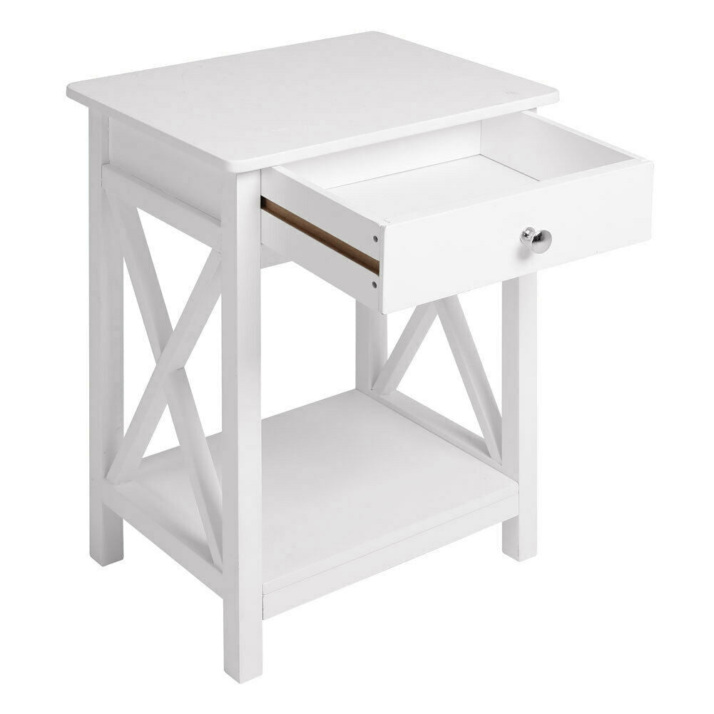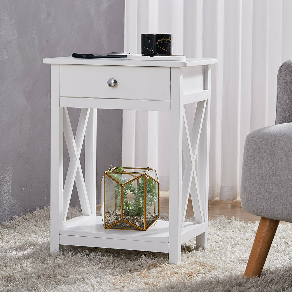 White Bedside Table Nightstand 1 Drawer Side Cabinet Storage Chest Bedroom
