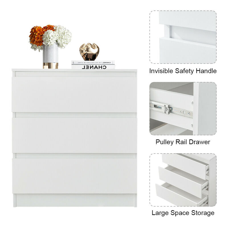 White / Black Chest of Drawers Bedside Table Nightstand 3 Drawer Cabinet Bedroom
