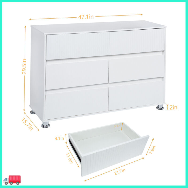 White Chest of 6 Drawers Sideboard Unit Wardrobe Bedroom Living Room Furniture
