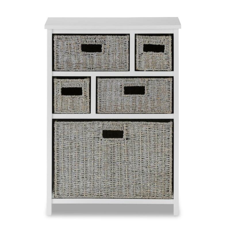 White Chest of Drawers Wooden Bathroom Hallway Storage 5 Basket AssembledTetbu