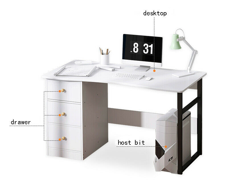 White Computer Desk PC Laptop Table Home Office Study Workstation Gaming Drawers
