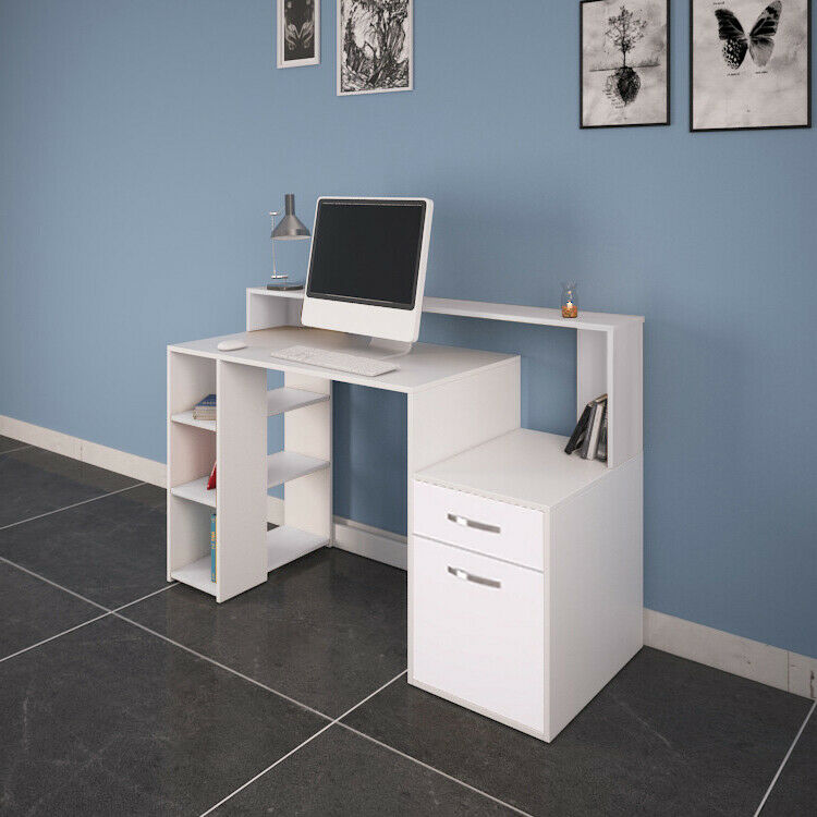 White Computer Desk PC Table Office Workstation Storage Shelves Drawers Printer