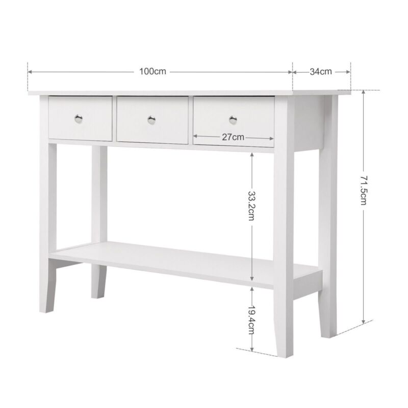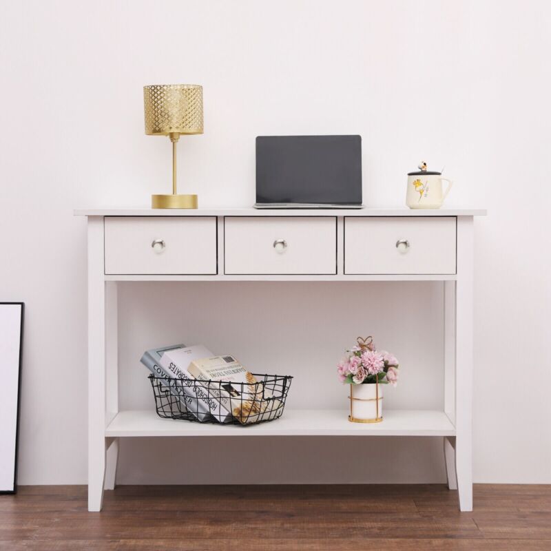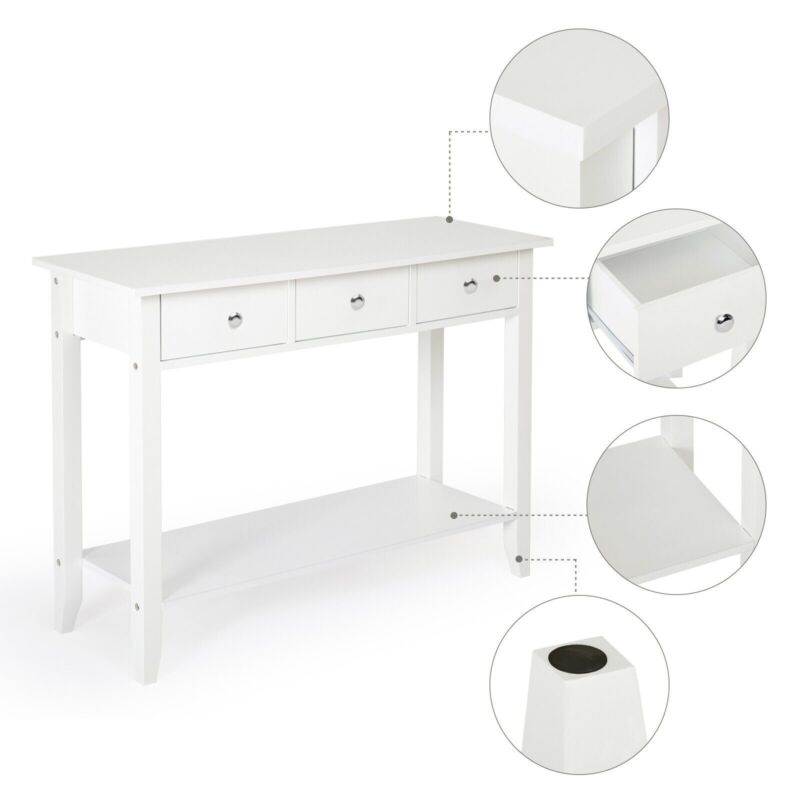 White Console Table 3 Drawer w/Shelf Hallway Hall Table Dressing Table Furniture