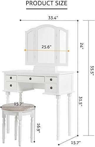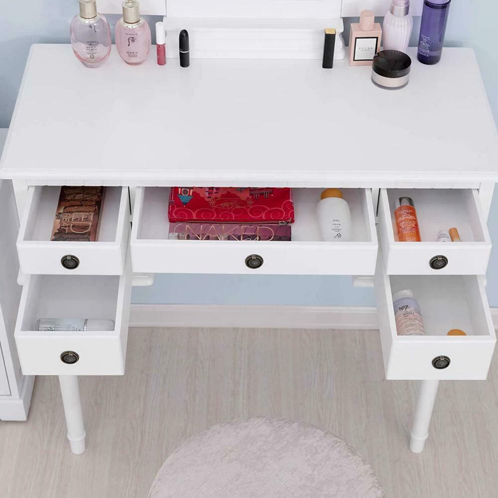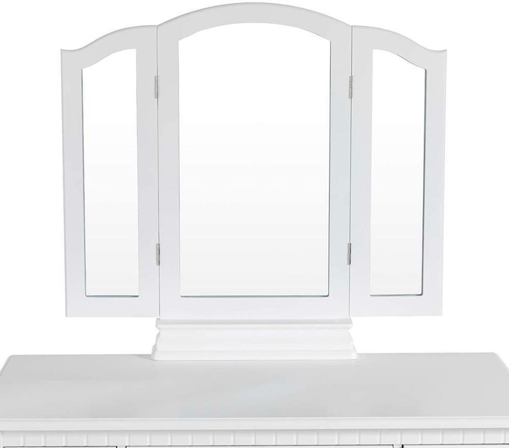 White Dressing Table Fold 3 Mirror & Stool Set 5 Drawer Bedroom Makeup Desk