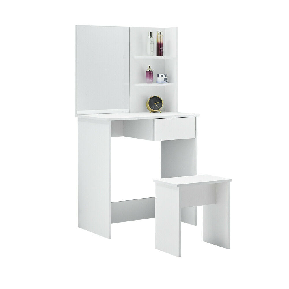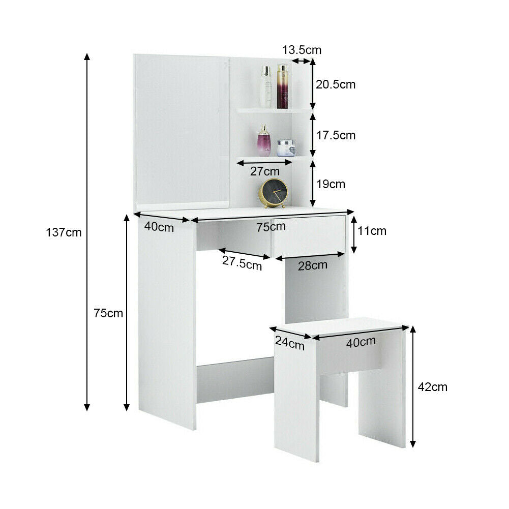 White Dressing Table Set Makeup Desk Mirror & Drawer + Stool Bedroom Furniture