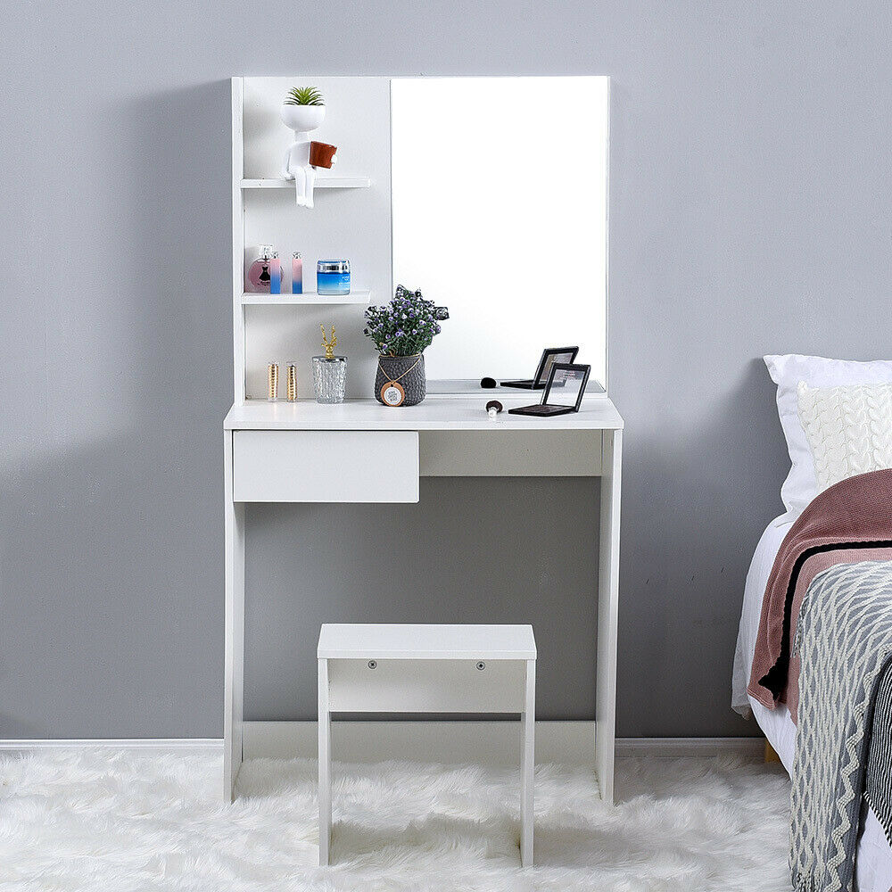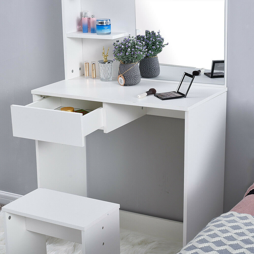 White Dressing Table Set Makeup Vanity Desk Bedroom w/ Drawer&Mirror&