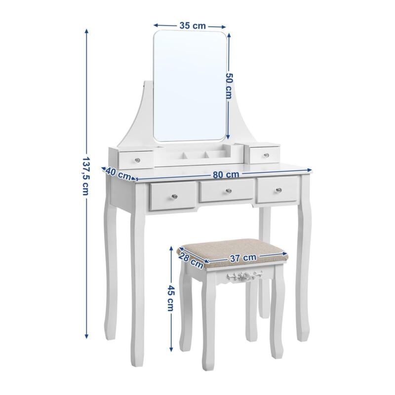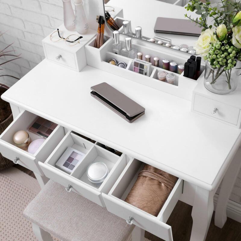 White Dressing Table Set with Mirror and Stool Girls Makeup Desk with 5 Drawers