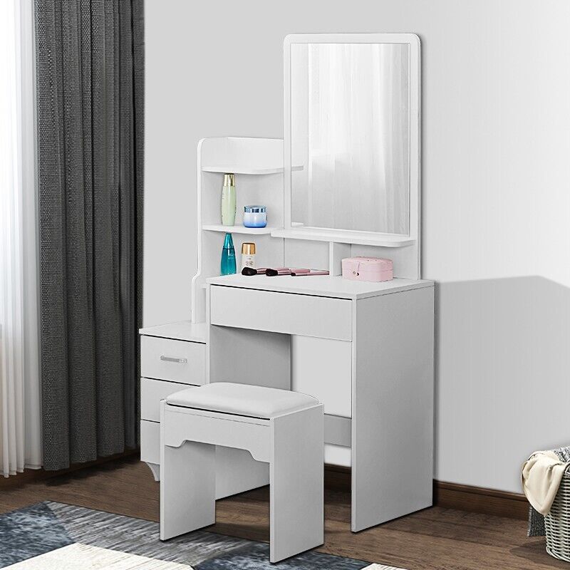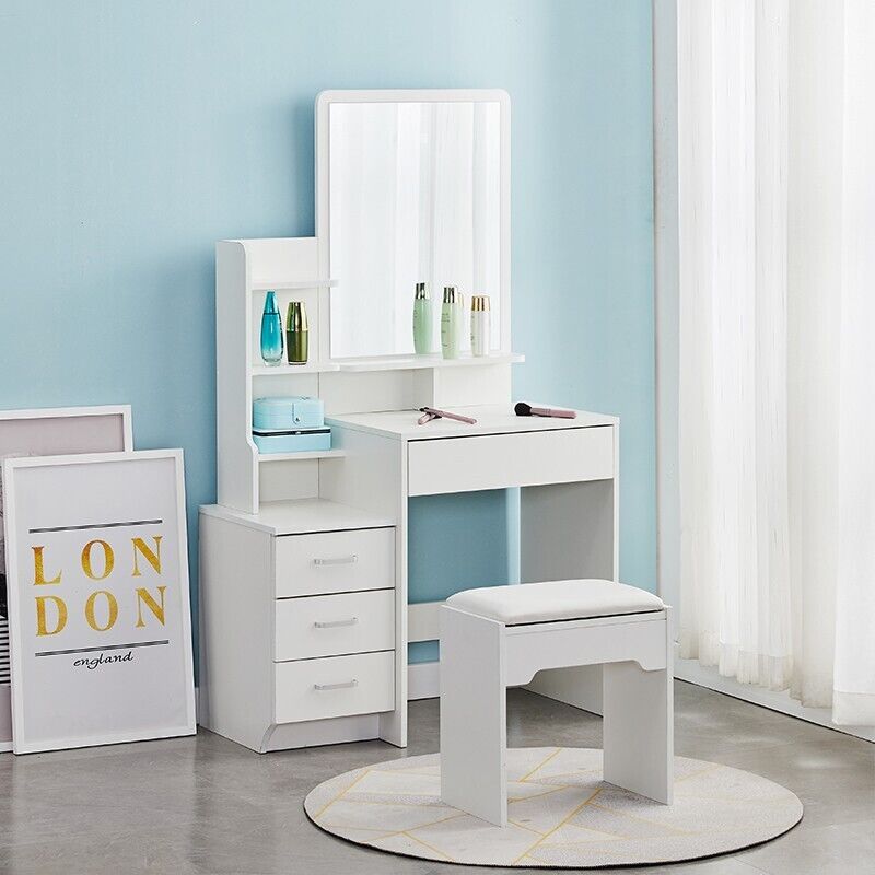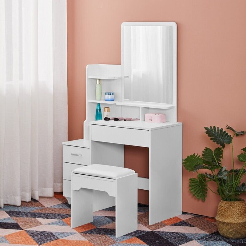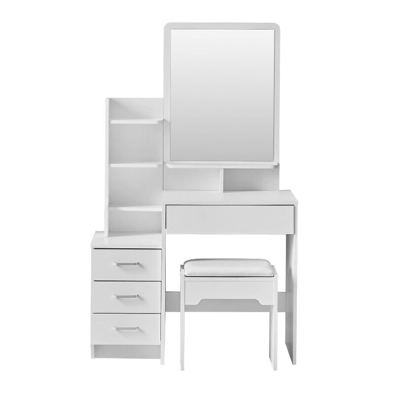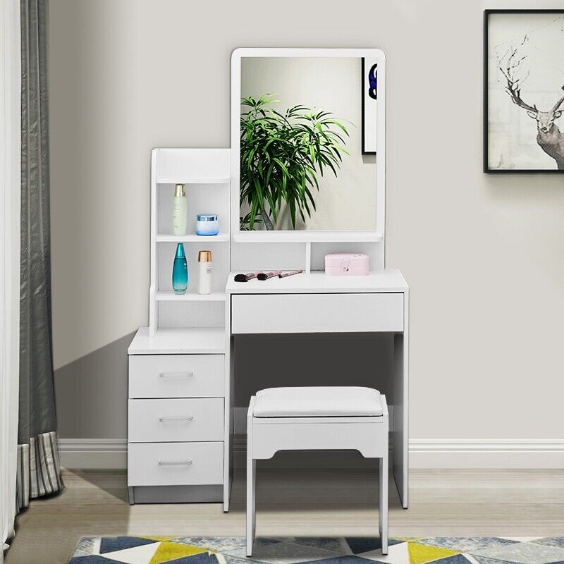 White Dressing Table&Stool Set Makeup Desk Vanity Table Drawers Mirror Dresser
