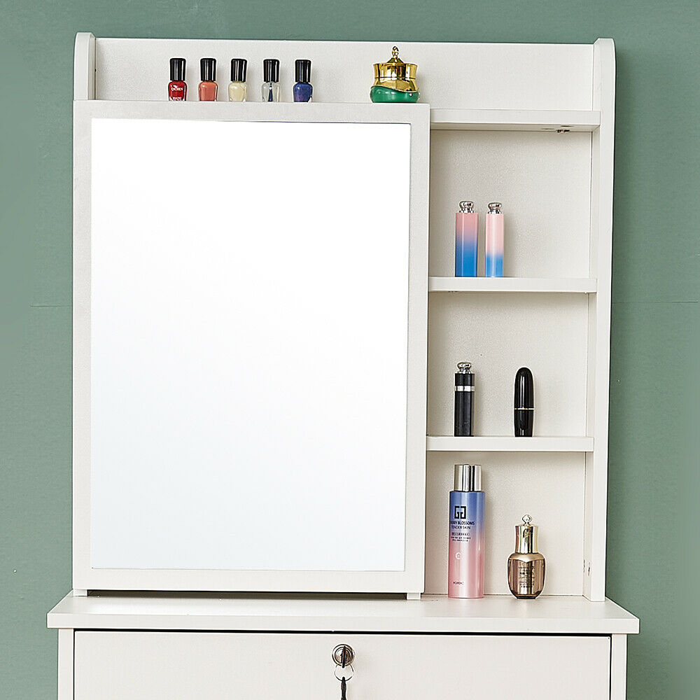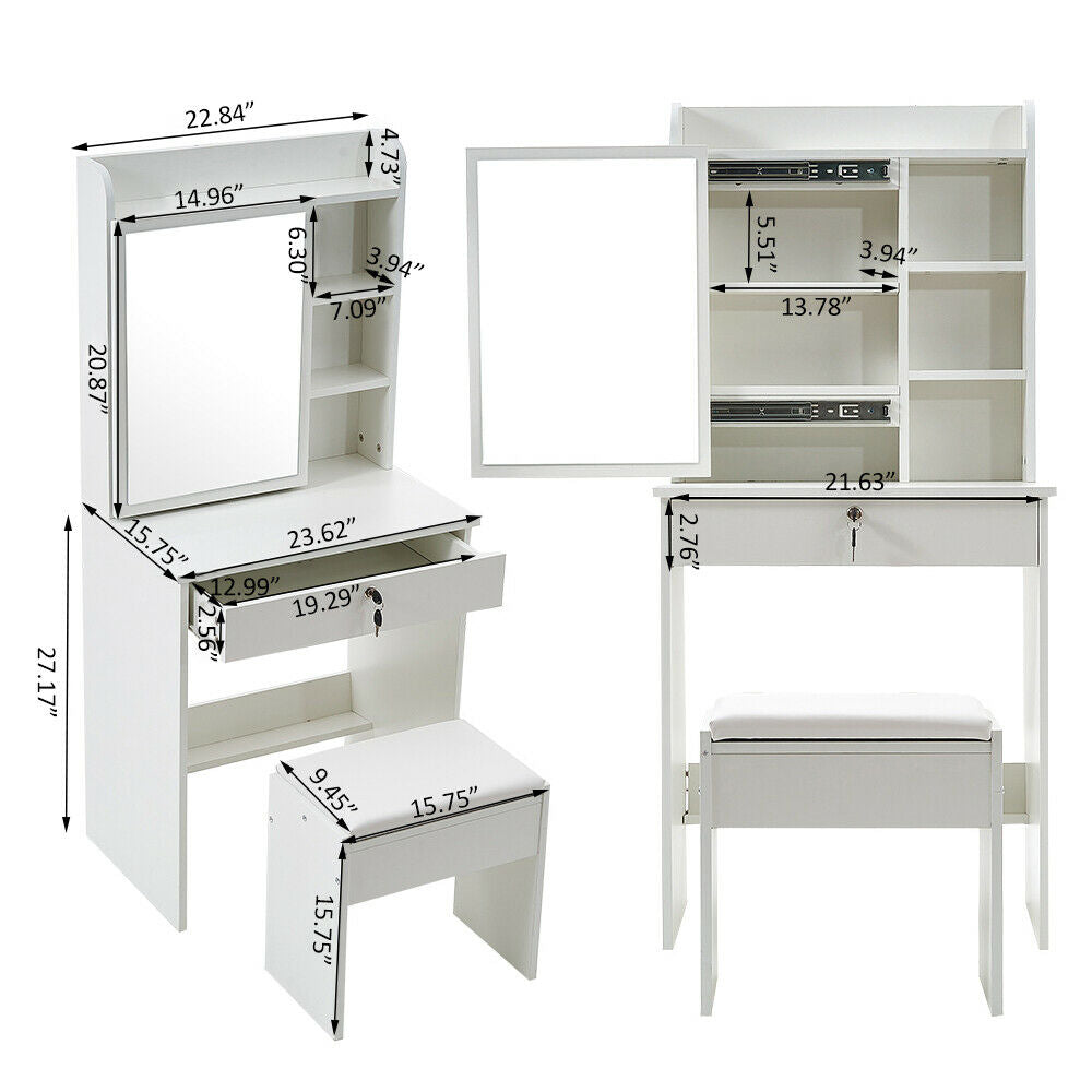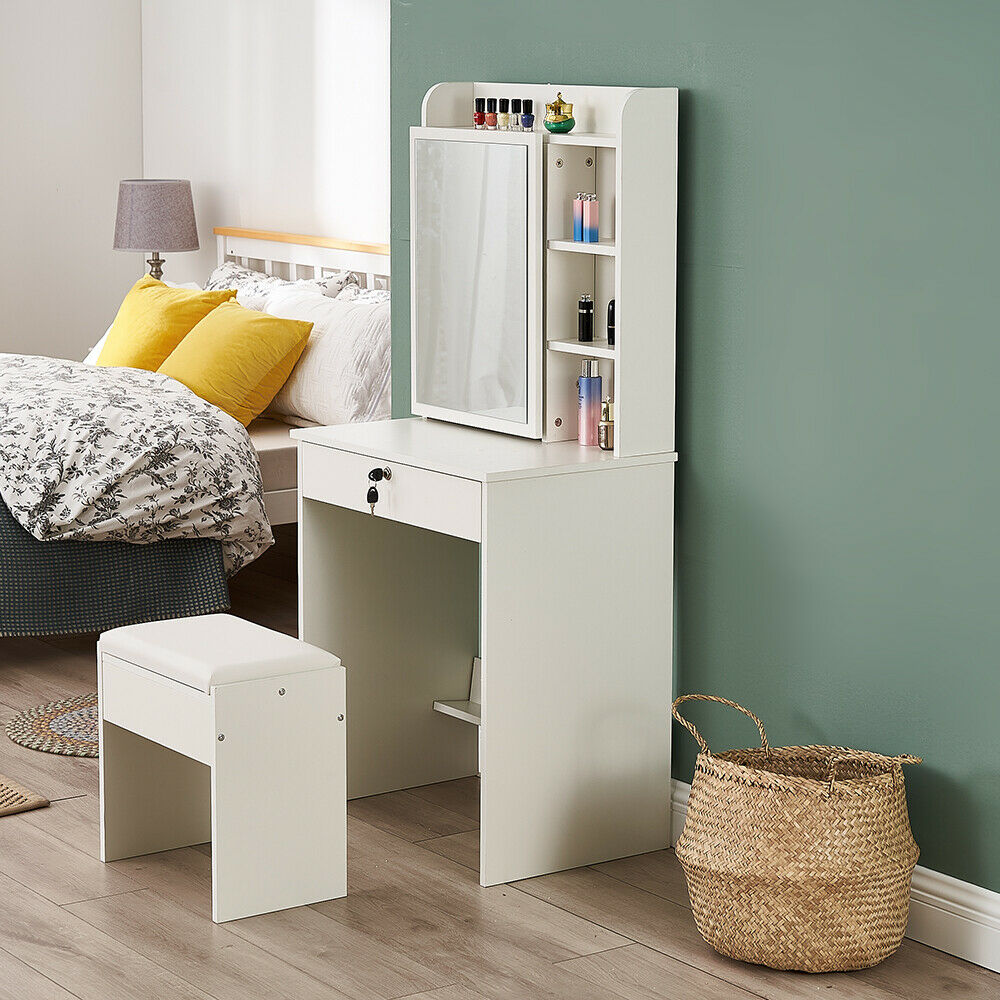 White Dressing Table Stool Vanity Set Makeup Desk w/ Sliding Mirror & Drawers UK