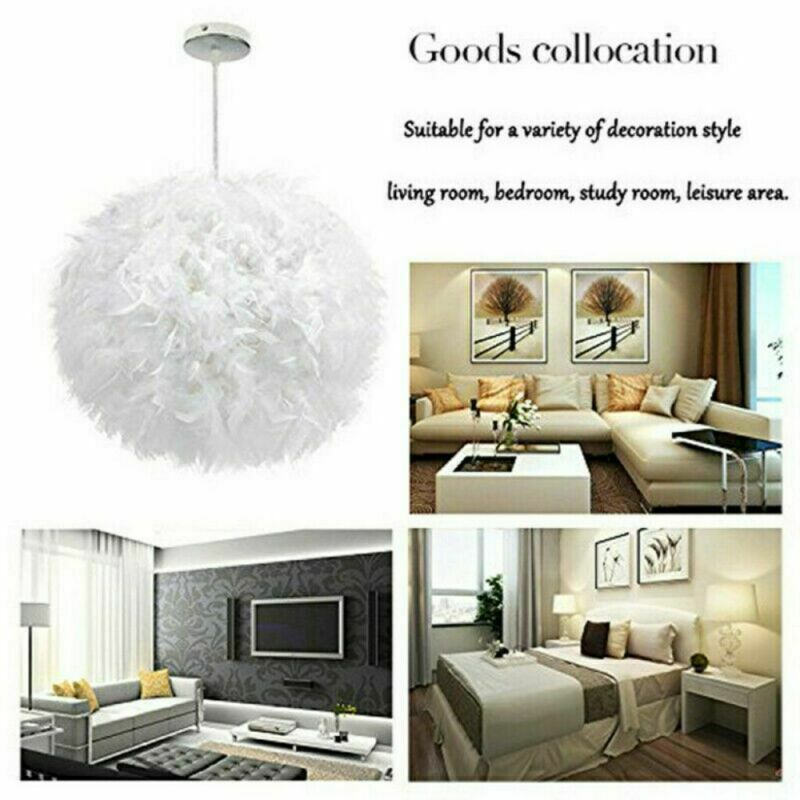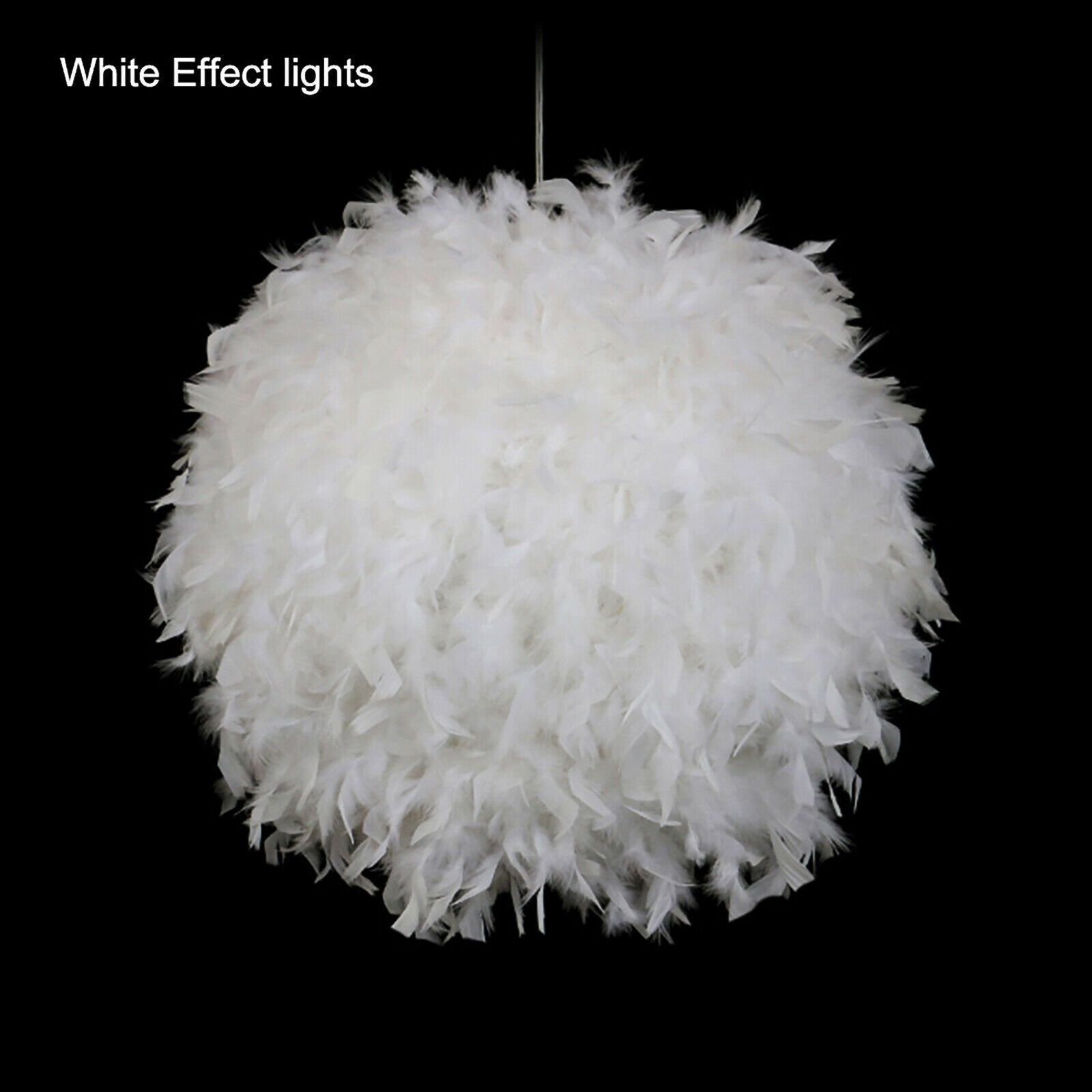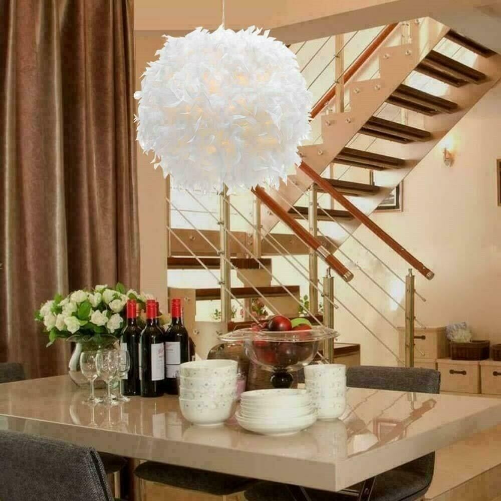 White Feather Ceiling Pendant Light Shade Modern Bedroom Nordic Style Night Lamp