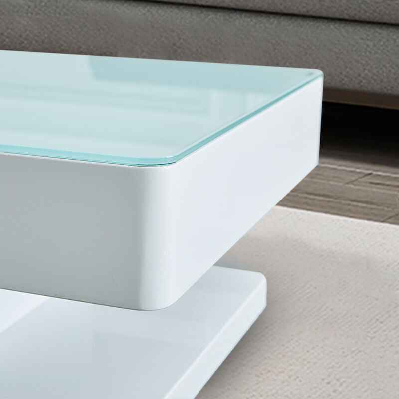 White High Gloss Coffee Table Rectangle Glass Living Room Table Furniture Modern