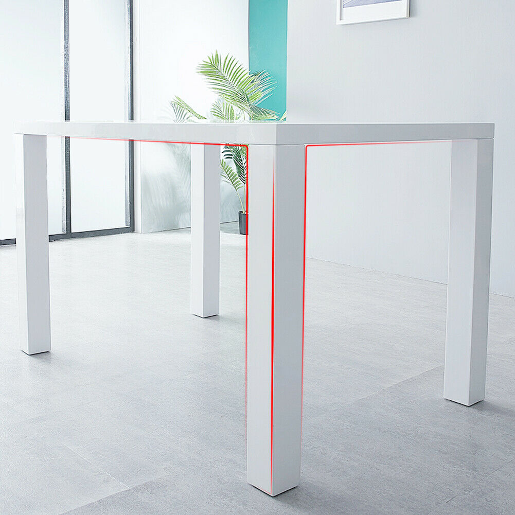 White High Gloss Dining Table Dining Room Wood Rectangular 4-6 Seats Kitchen