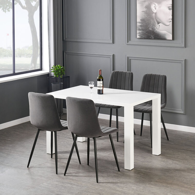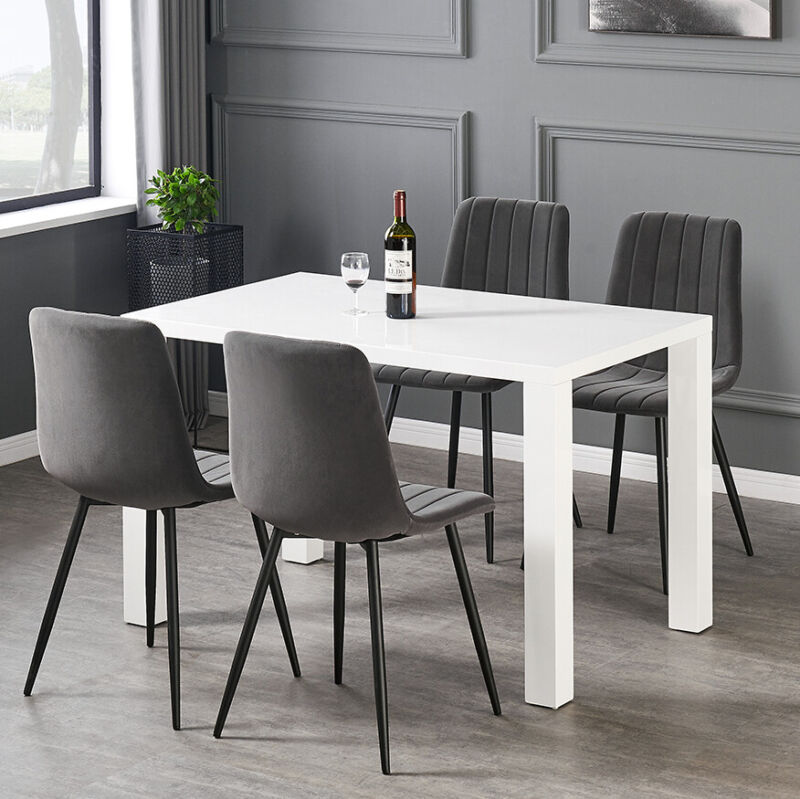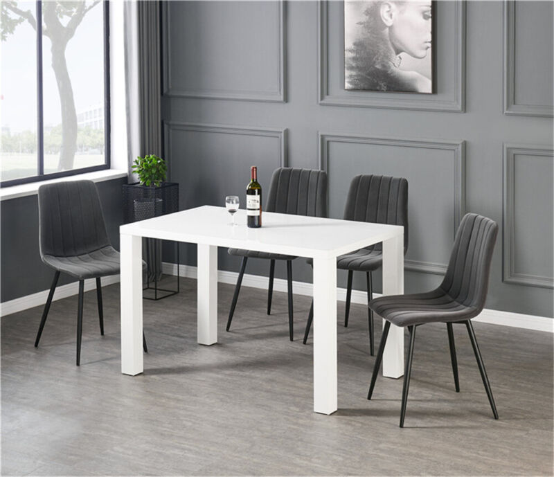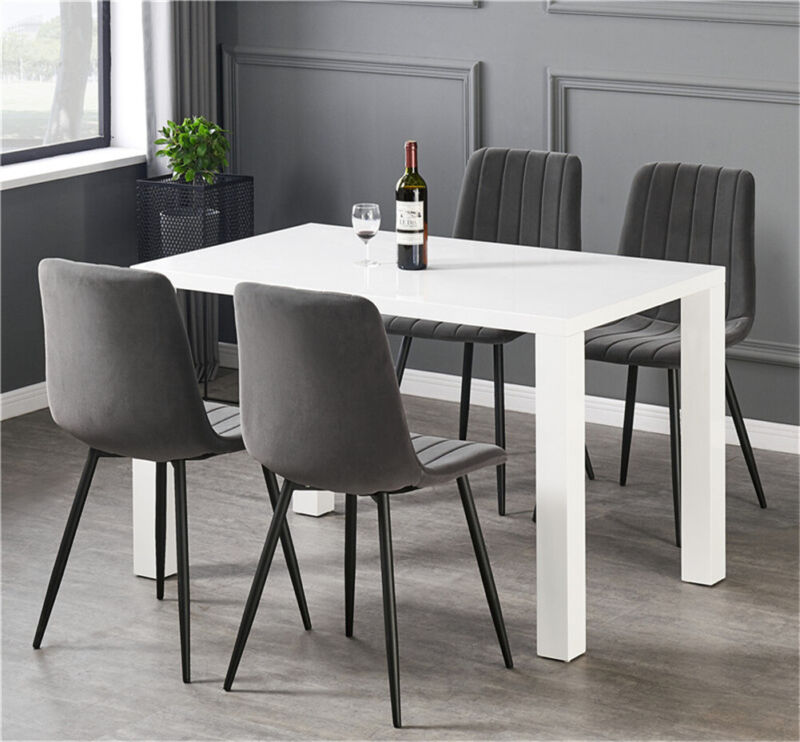 White High Gloss Dining Table with 4 6 Chairs Set Kitchen Furniture MDF Grey