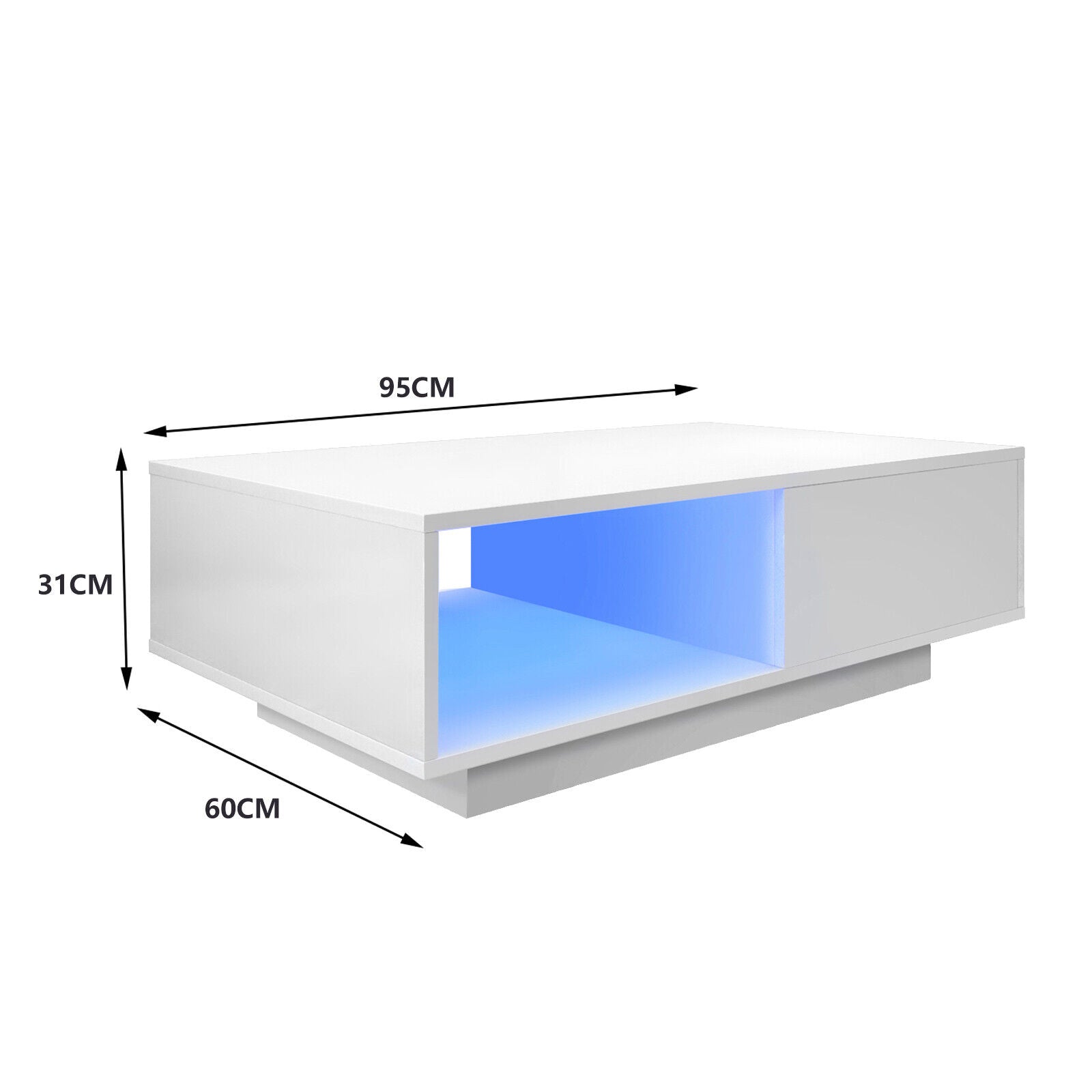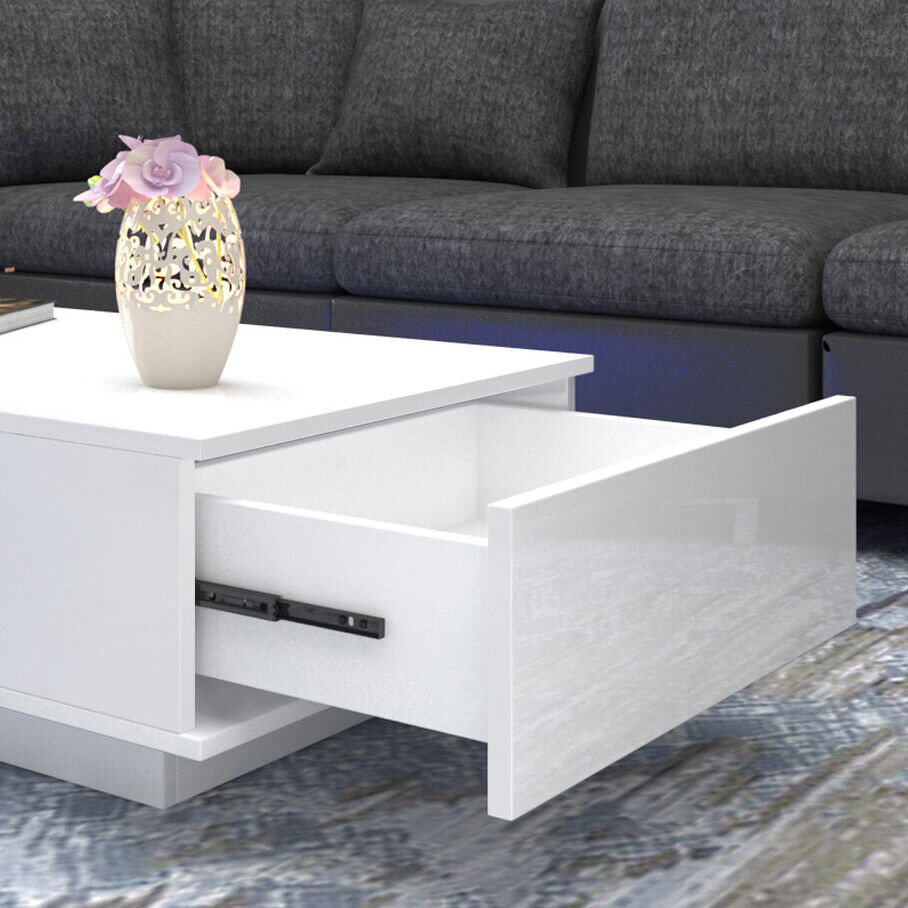 White High Gloss LED Modern Coffee Table Wooden Drawer Storage Living Room