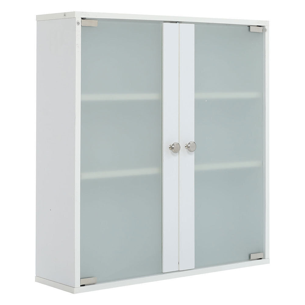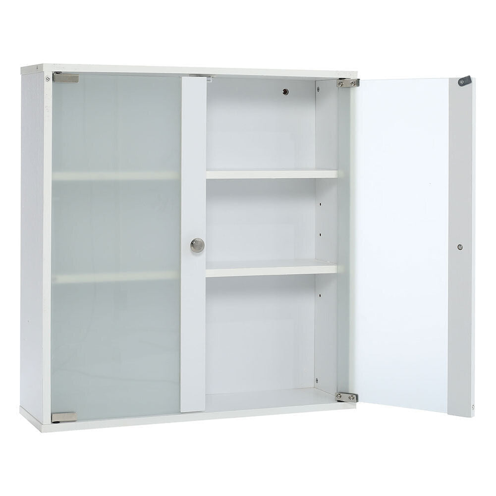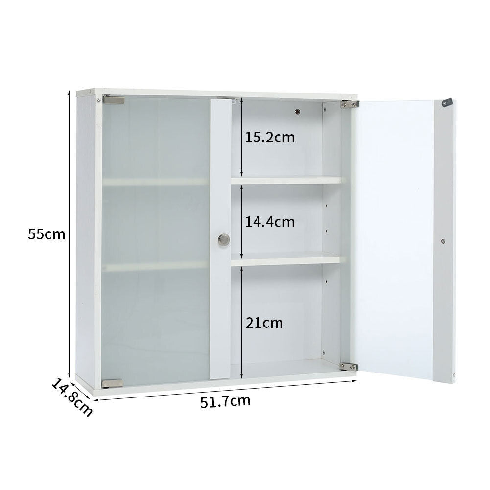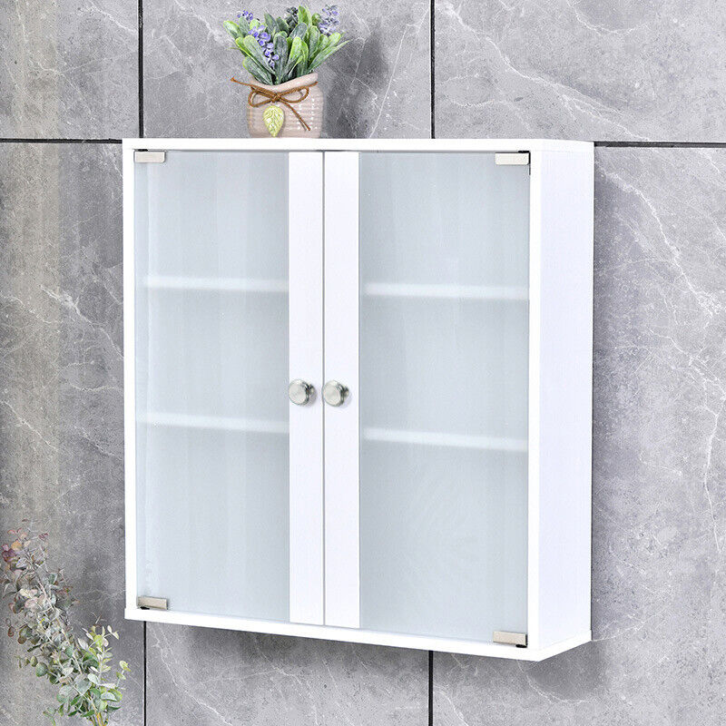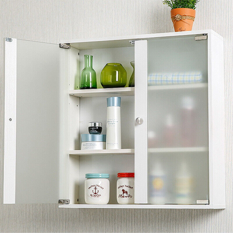 White Kitchen Bathroom Cabinet Wall Mounted Double Door Storage Cupboard Shelf