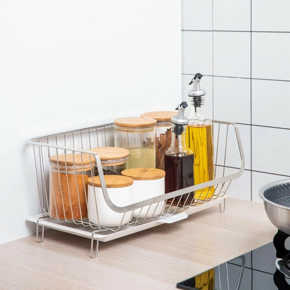 White Kitchen Cupboard Basket Stainless Steel Fruit Veg Countertop Storage Baske