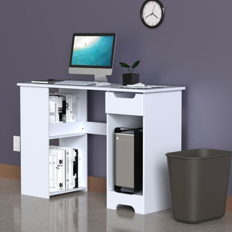 White L-shaped Computer Desk Corner PC Table Workstation Home Office w/ Shelves