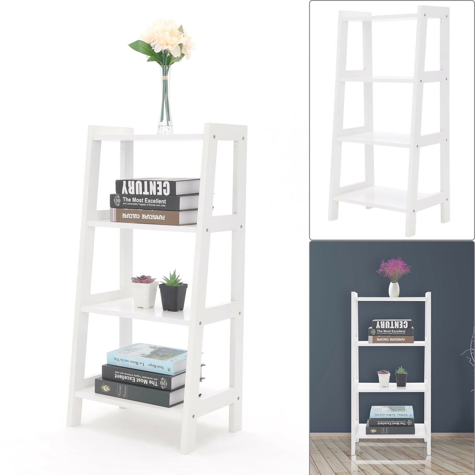 White Ladder Shelf Wooden 4 Tier Storage Unit Display Stand Bathroom Christow