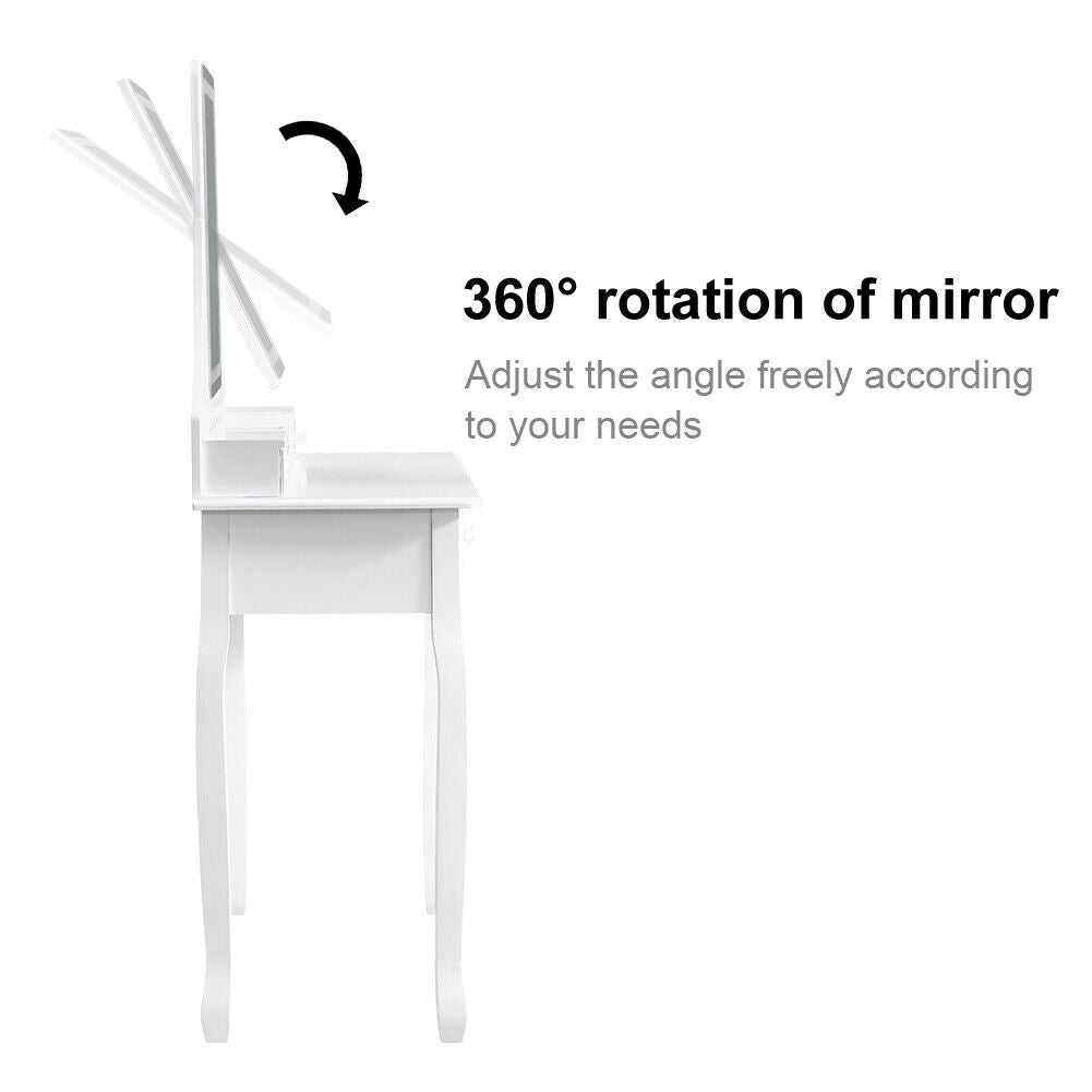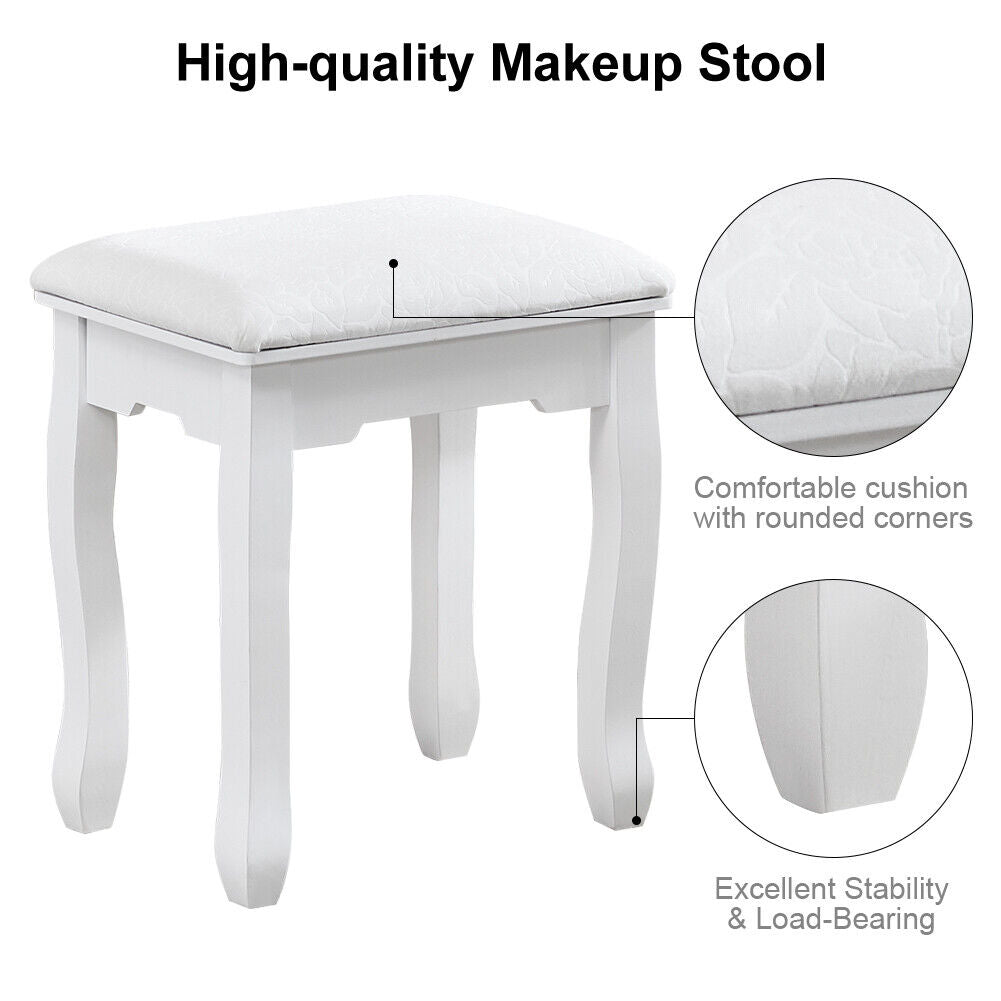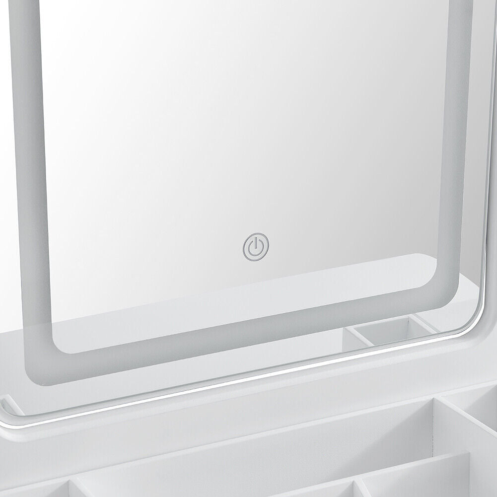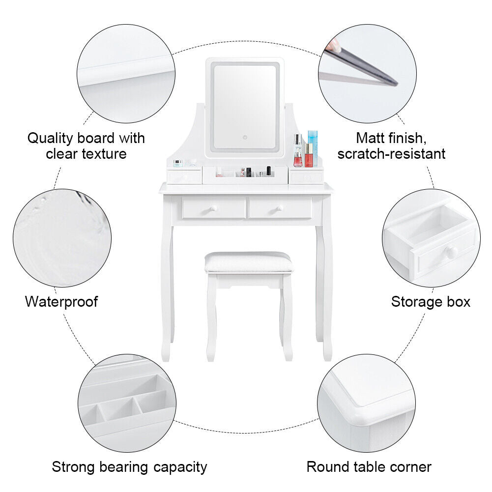 White Mirror Dressing Table Dresser Makeup Desk LED Lights 4 Drawers Upholstered
