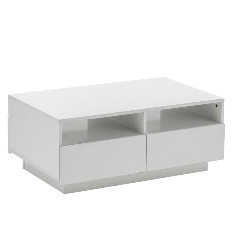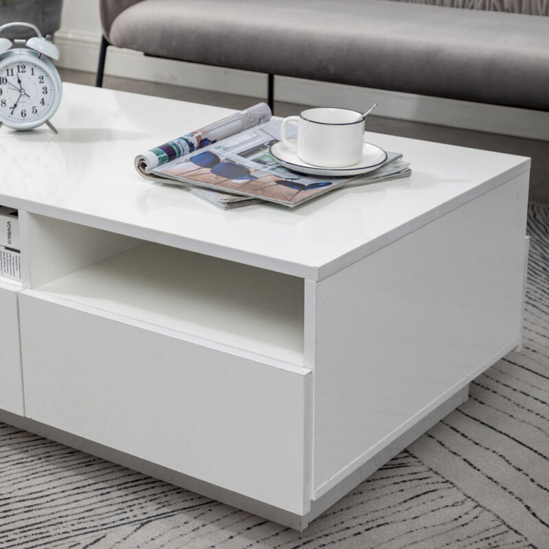 White Modern High Gloss Coffee Table with 4 Drawer Storage Sofa Side End Table