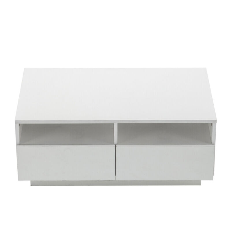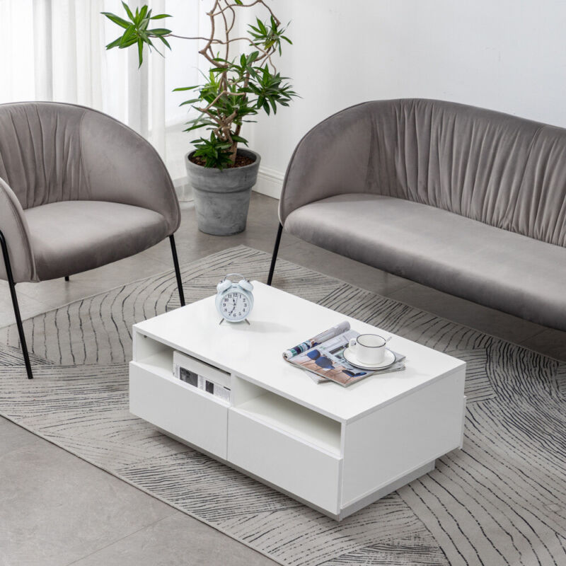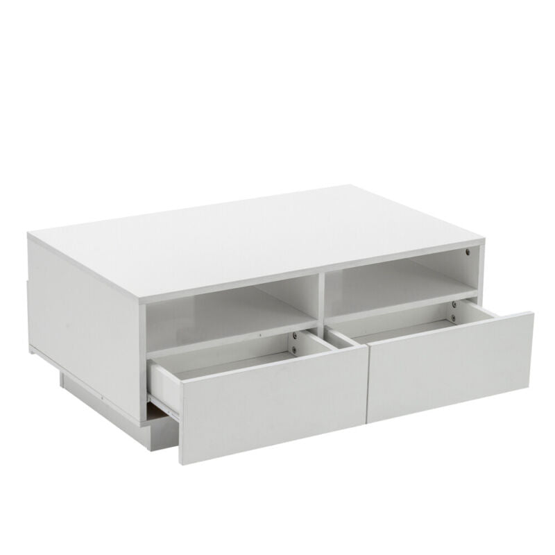White Modern High Gloss Coffee Table with 4 Drawer Storage Sofa Side End Table