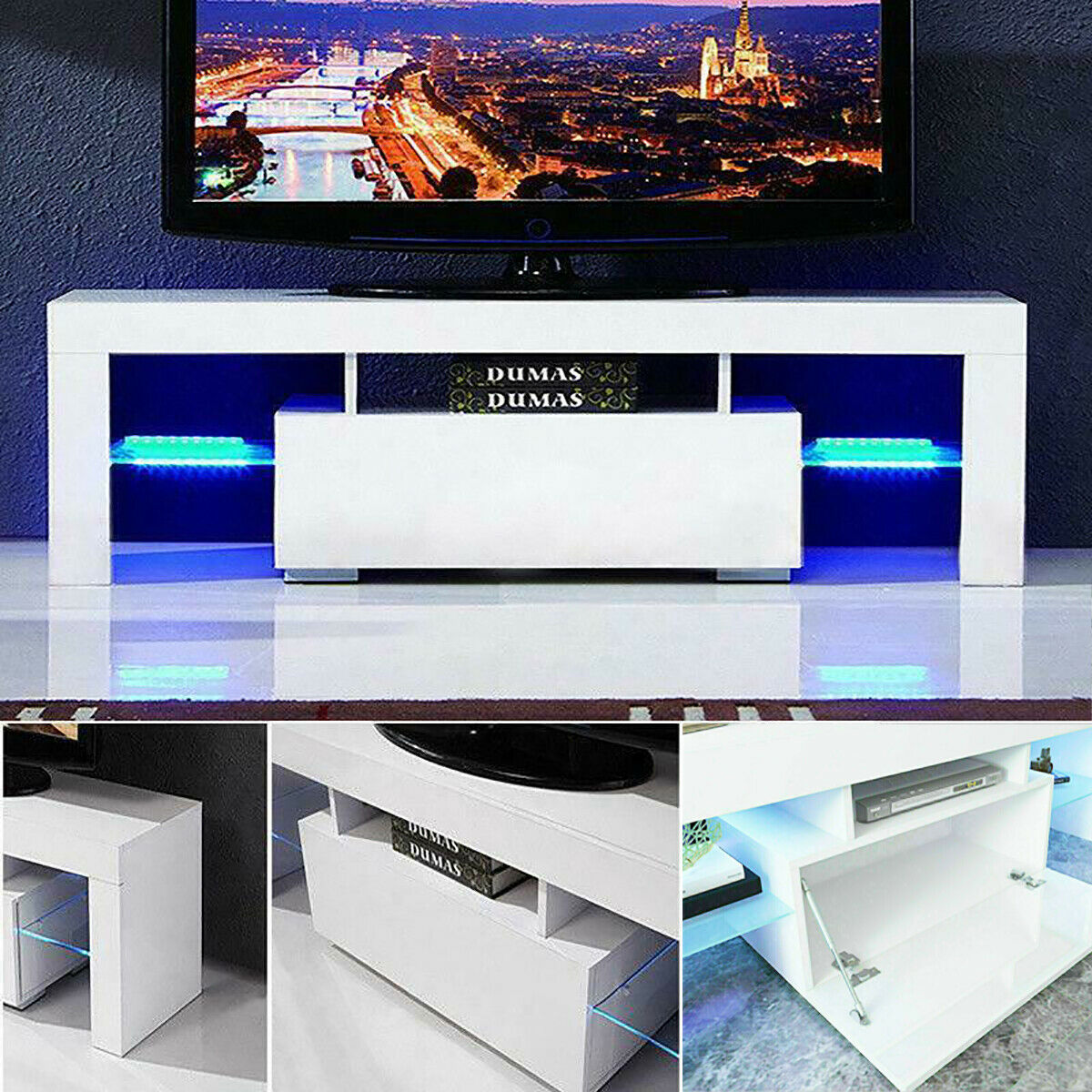 White Modern TV Stand Matt Cabinet Unit Coffee Table High Gloss Door LED Lights