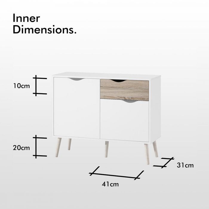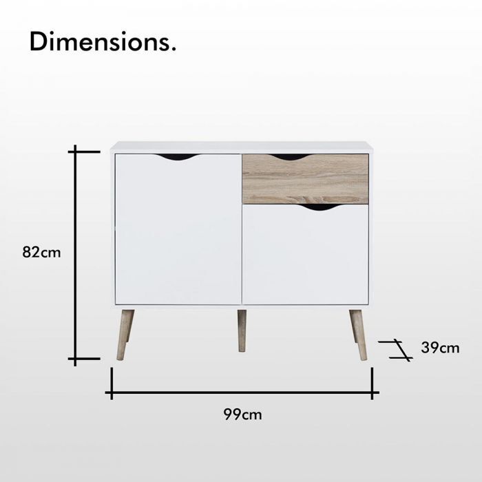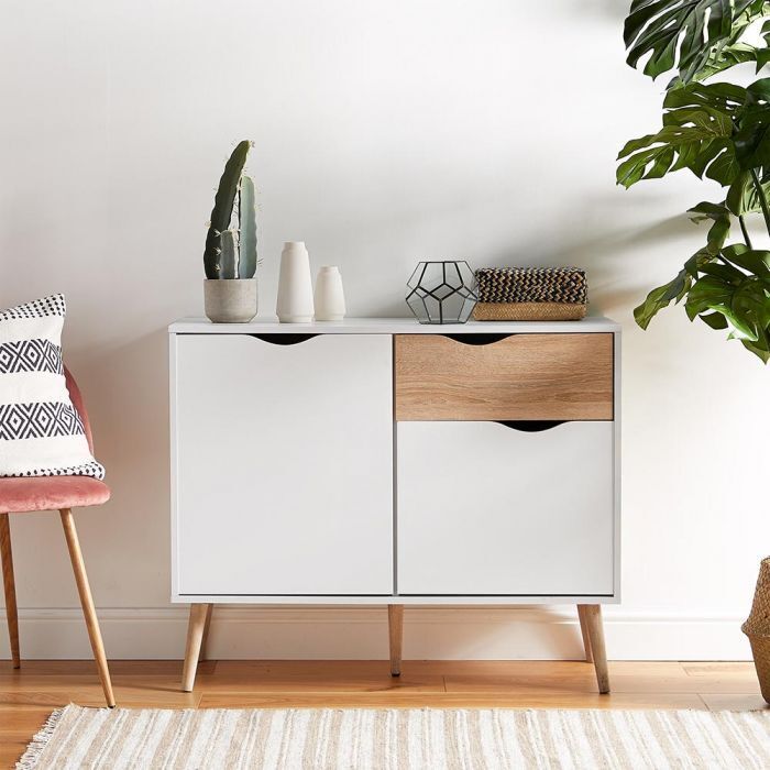White & Oak Effect Small Sideboard Living Room Home Decor 3 Drawer