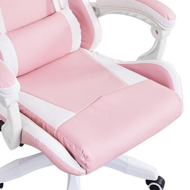 White Pink Executive Racing Gaming Chair PU Faux Leather Computer Desk Chair