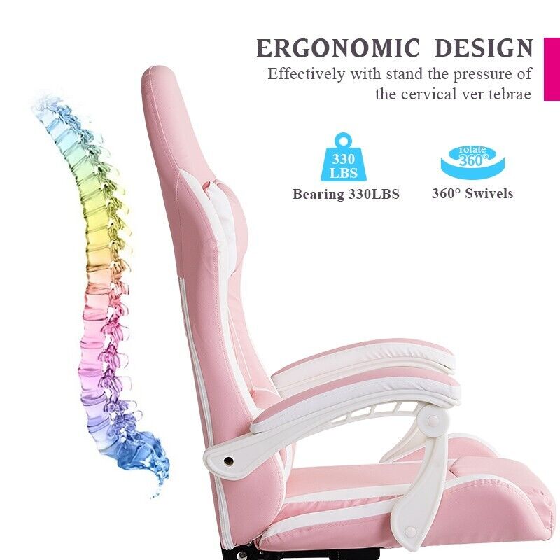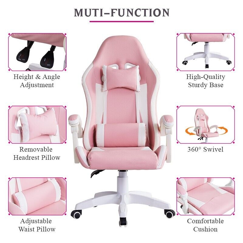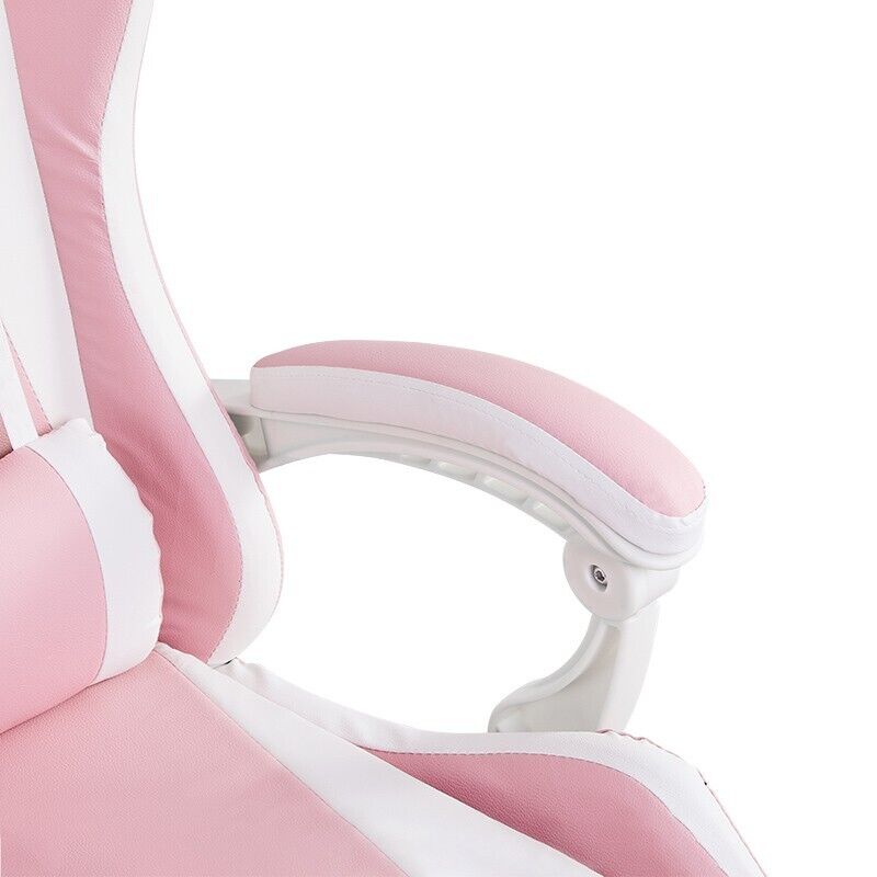White Pink Executive Racing Gaming Chair PU Faux Leather Computer Desk Chair
