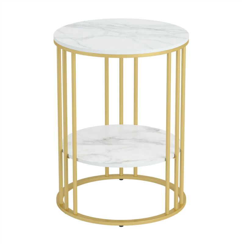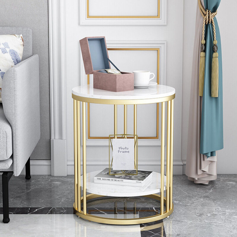 White Round Marble Coffee Table Sofa Side Table Anti-drop Fence Corner Cabinet