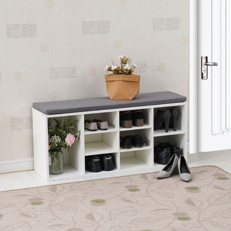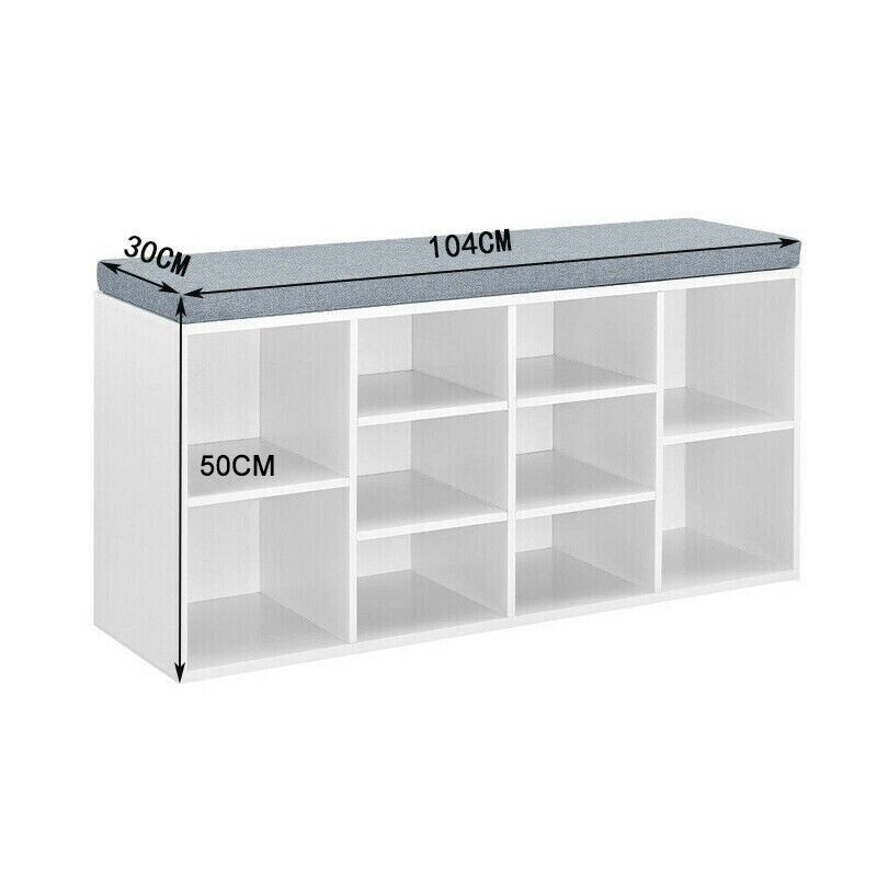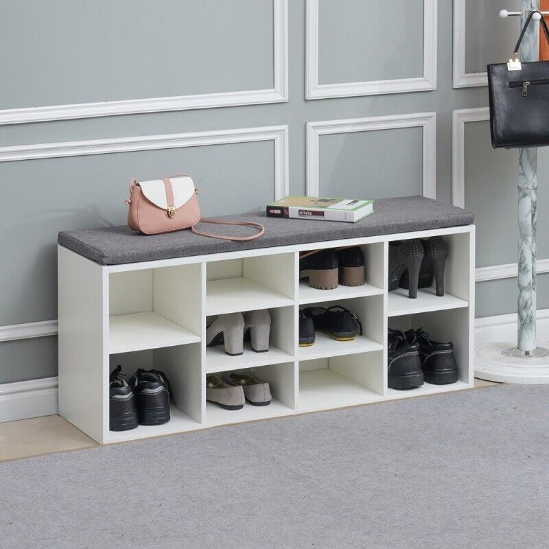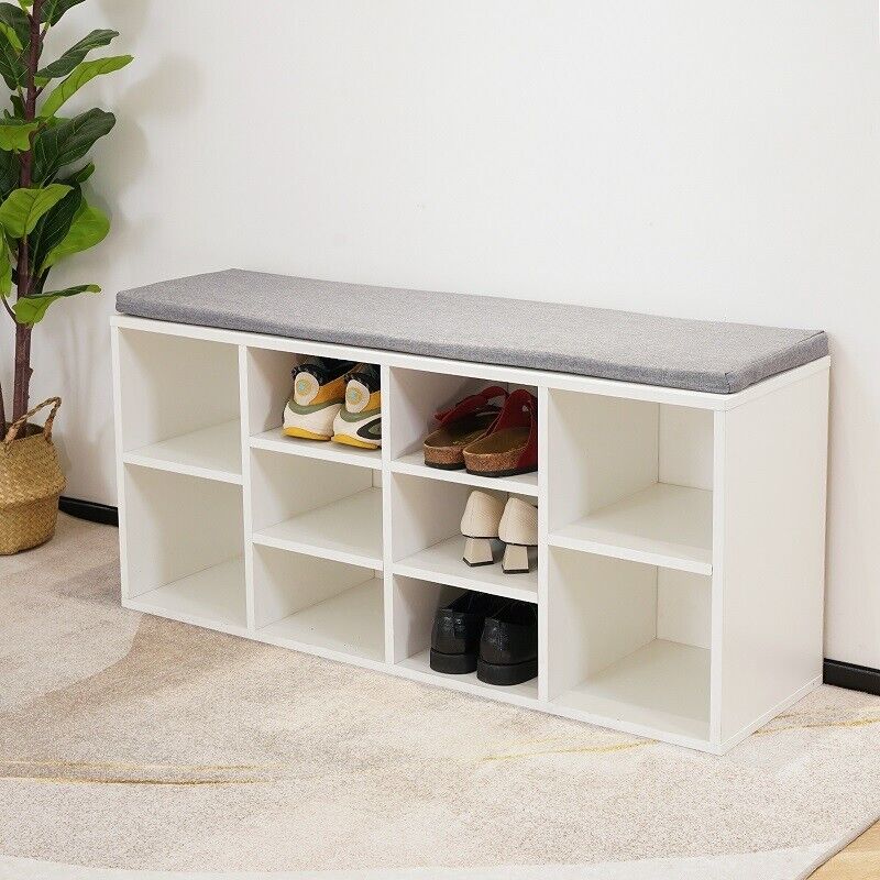 White Shoe Storage Bench Cabinet Ottoman Padded Seat Organizer Shelves Adjusting