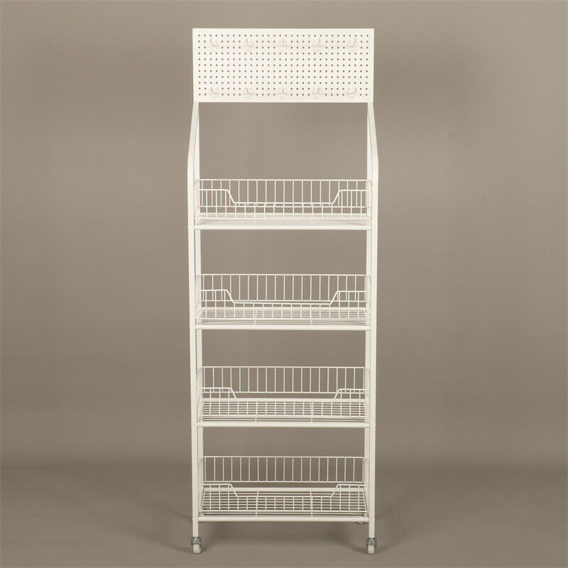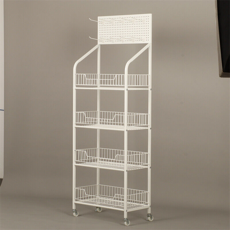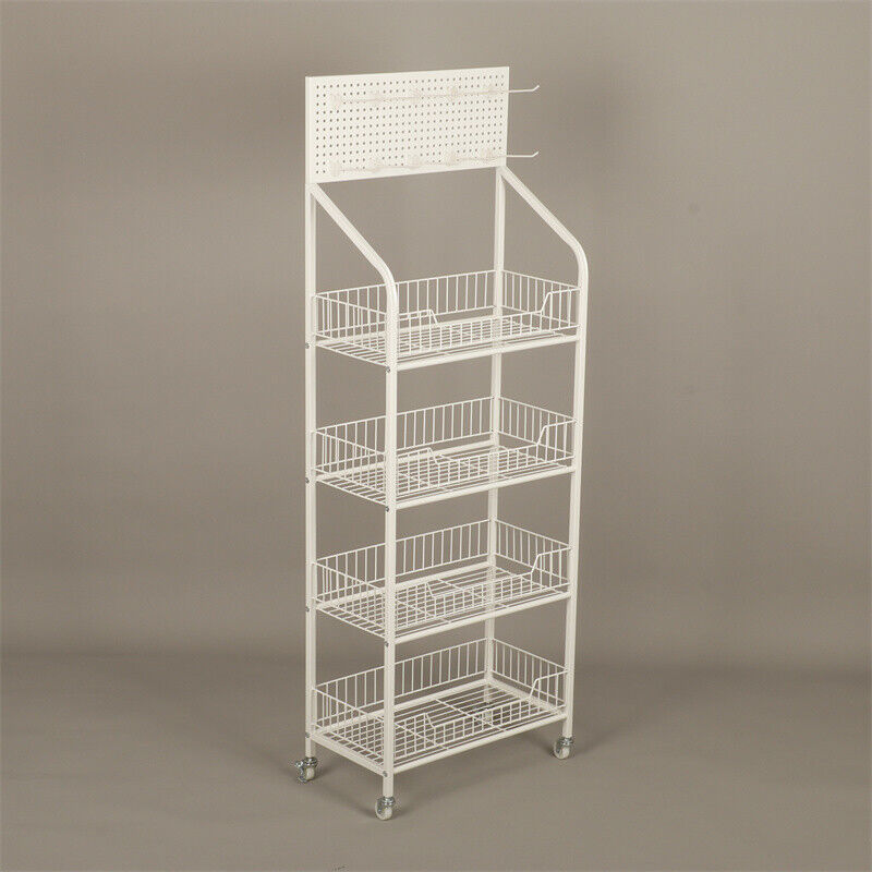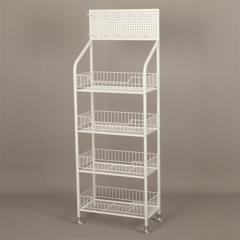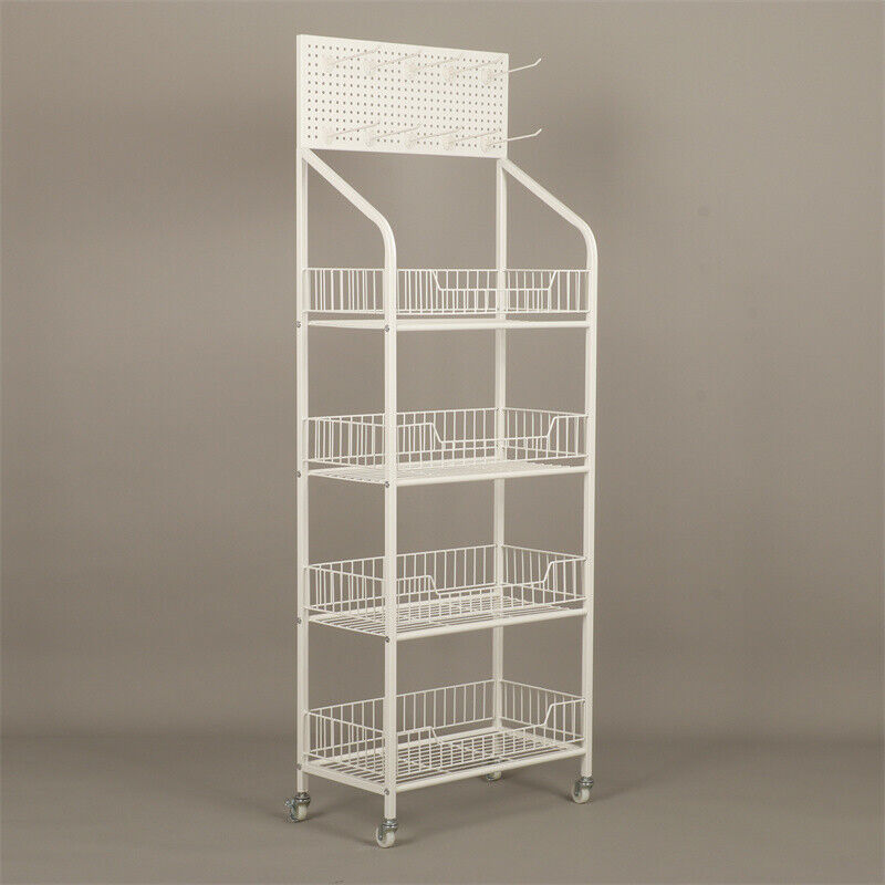 White Shop Retail Shelf Wire Mesh Display Rack Supermarket Movable or Fixed Legs