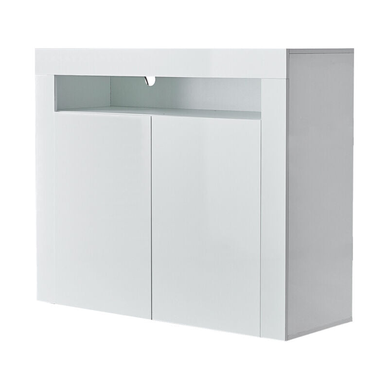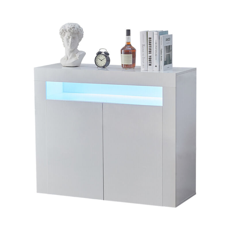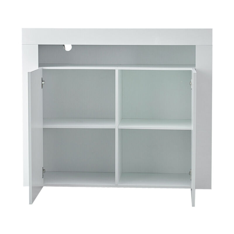 White Sideboard Cabinet High Gloss Cupboard Storage Furniture With LED 2 Doors