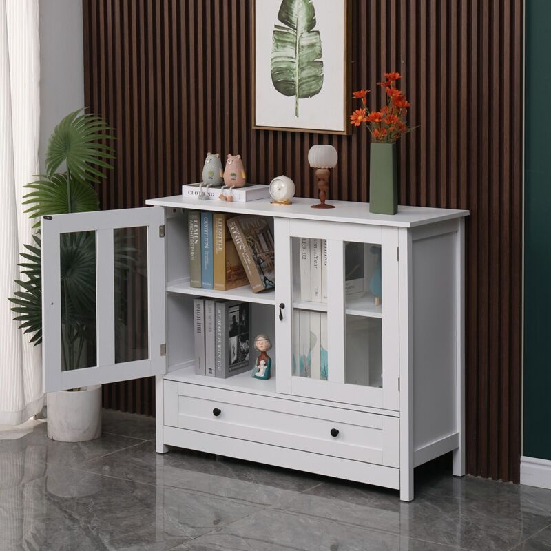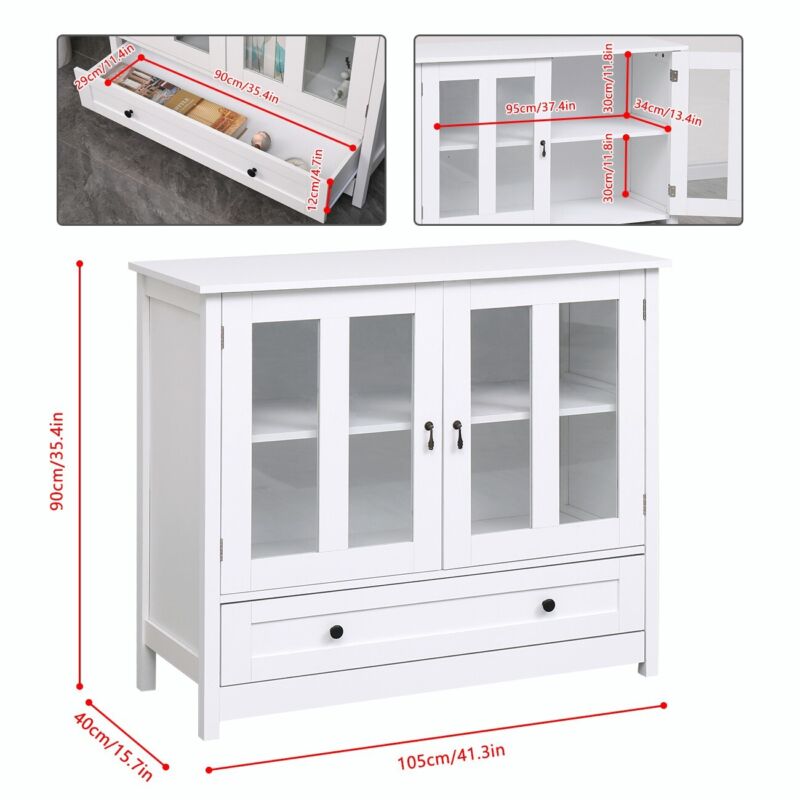 White Sideboard for Living Room, Display Cupboard for Kitchen Large Cabinet