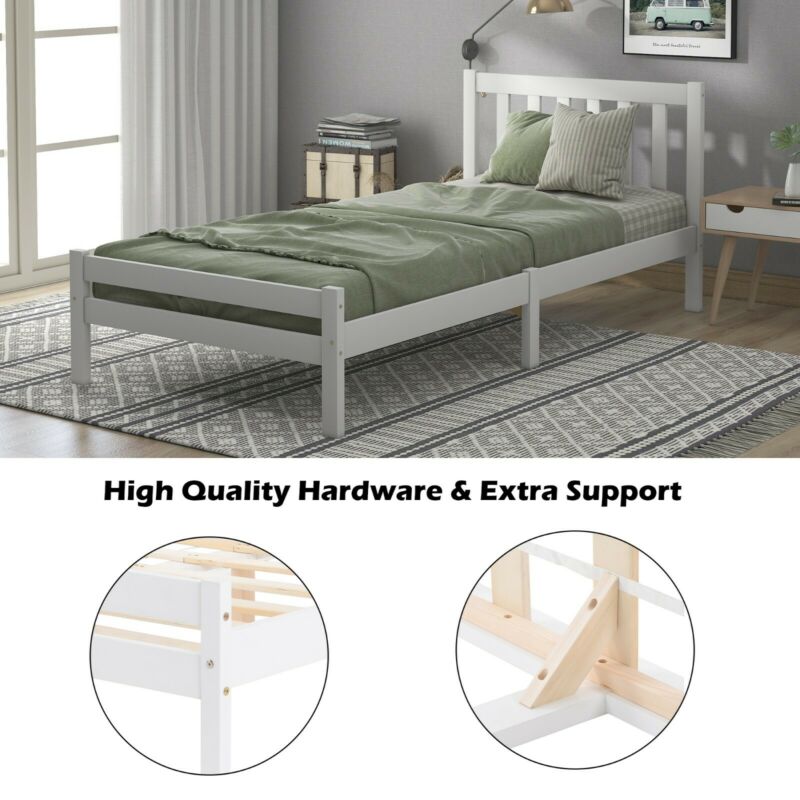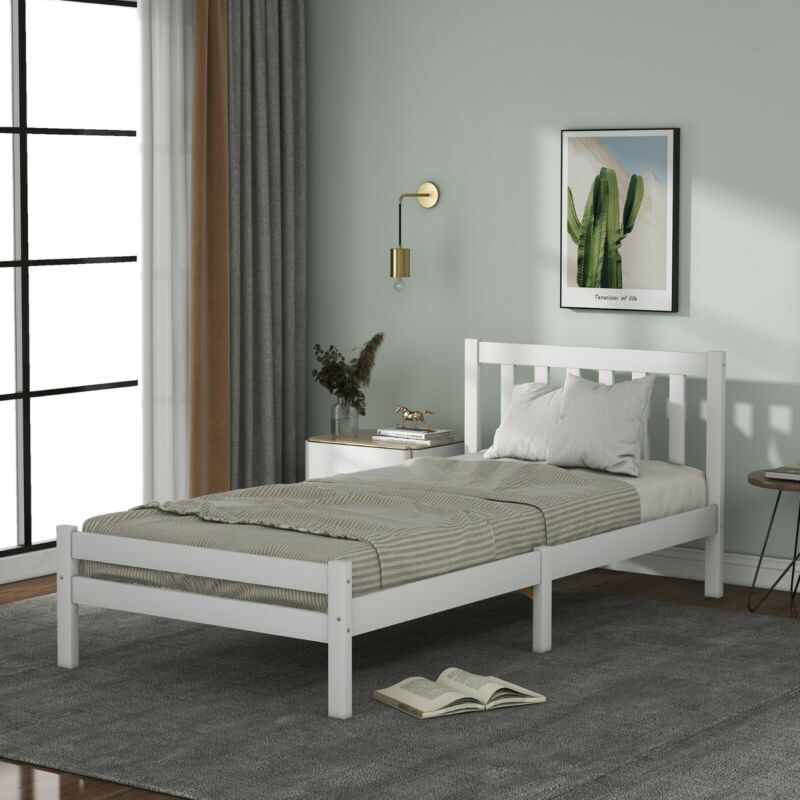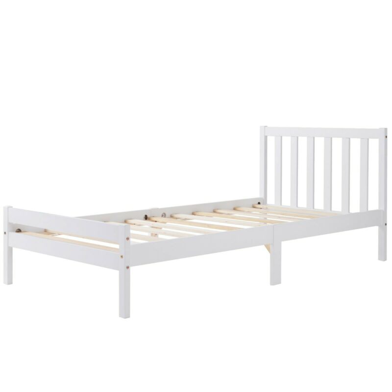 White Single Bed 3ft Solid Wooden Bed Frame Adult, Children Bed 90 x 190 cm