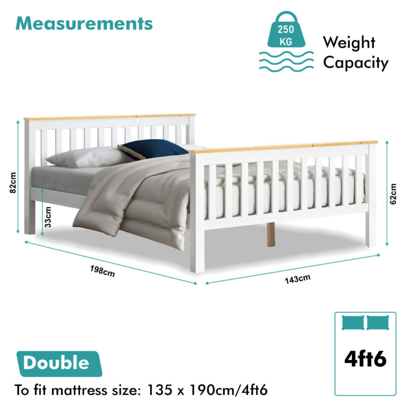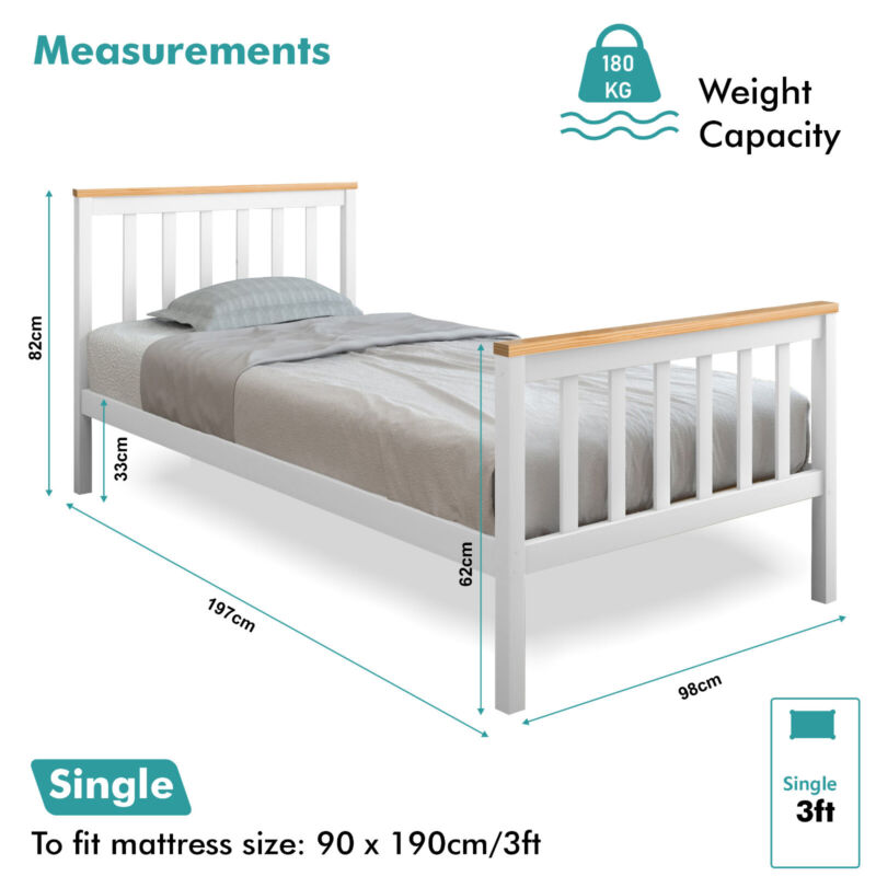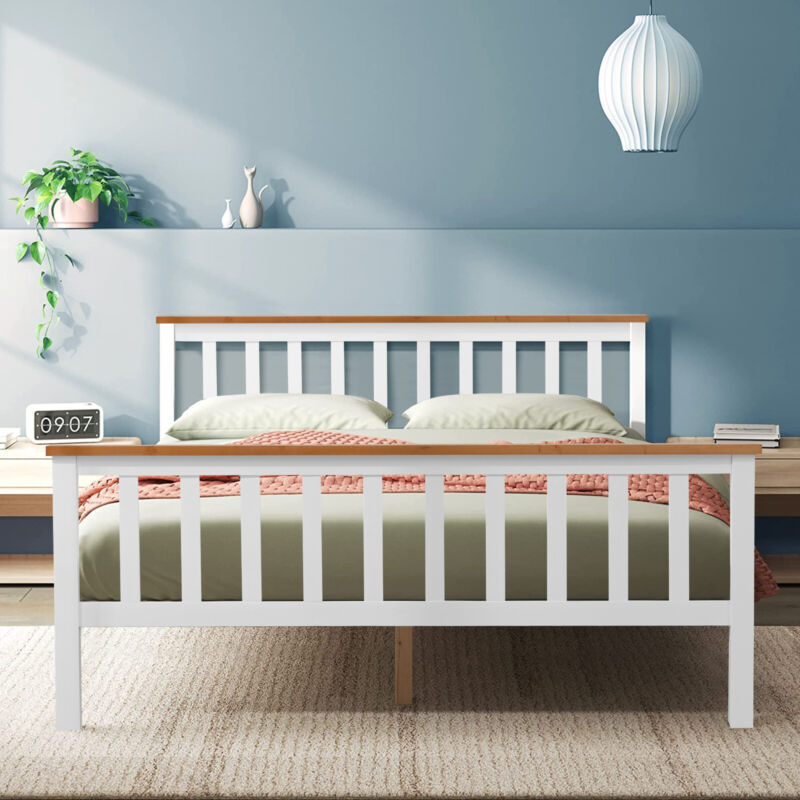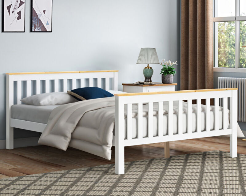 White Solid Wooden Bed Frame 3ft Single 4ft6 Double King Size Bed With Mattress