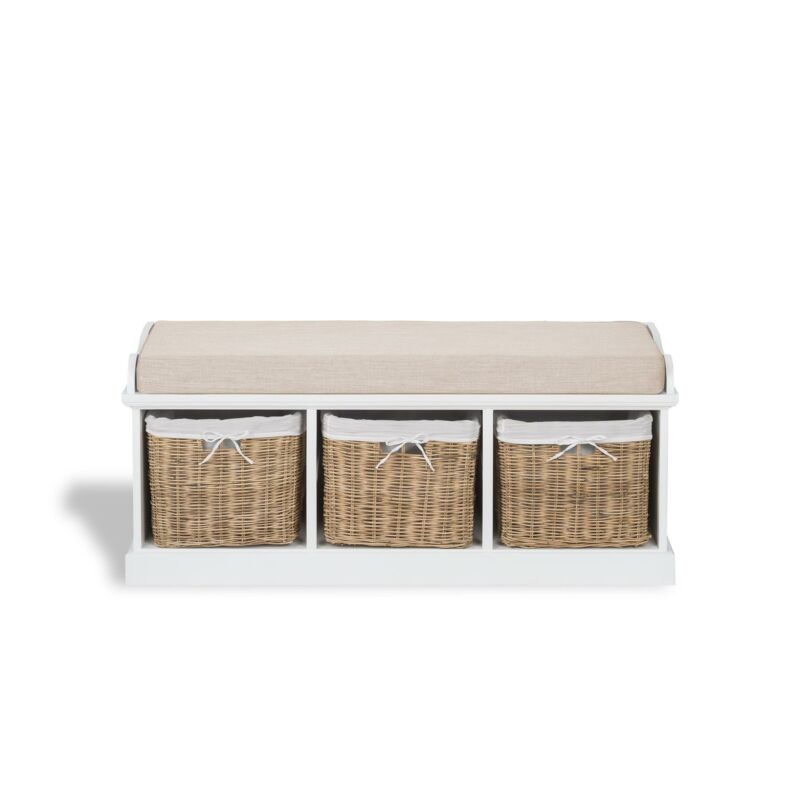 White Storage Bench Wooden Bench With Baskets Hallway Storage TETBURY Furniture