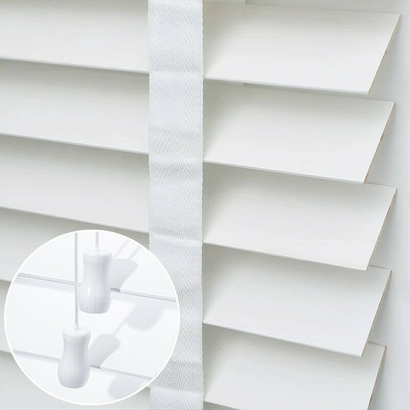 White Venetian Blinds Wooden Taped Slats Window Blinds -120cm Drop Various Width