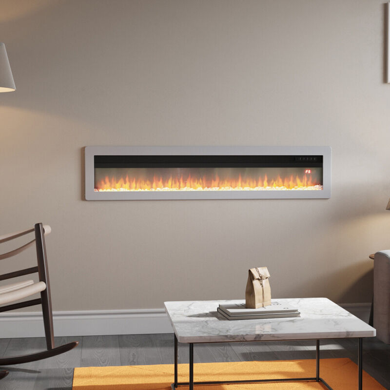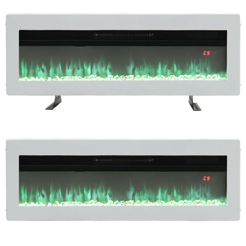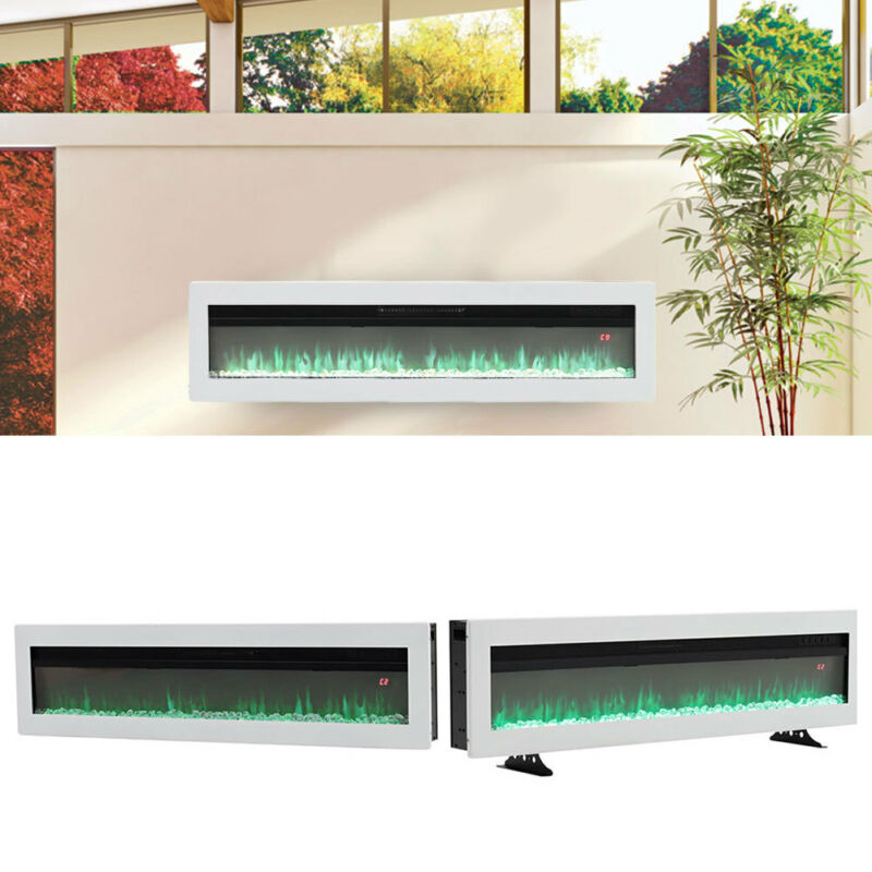 White Wall/Insert/Standing Fireplace Electric Fire Home Deco Crystal Flame Glass