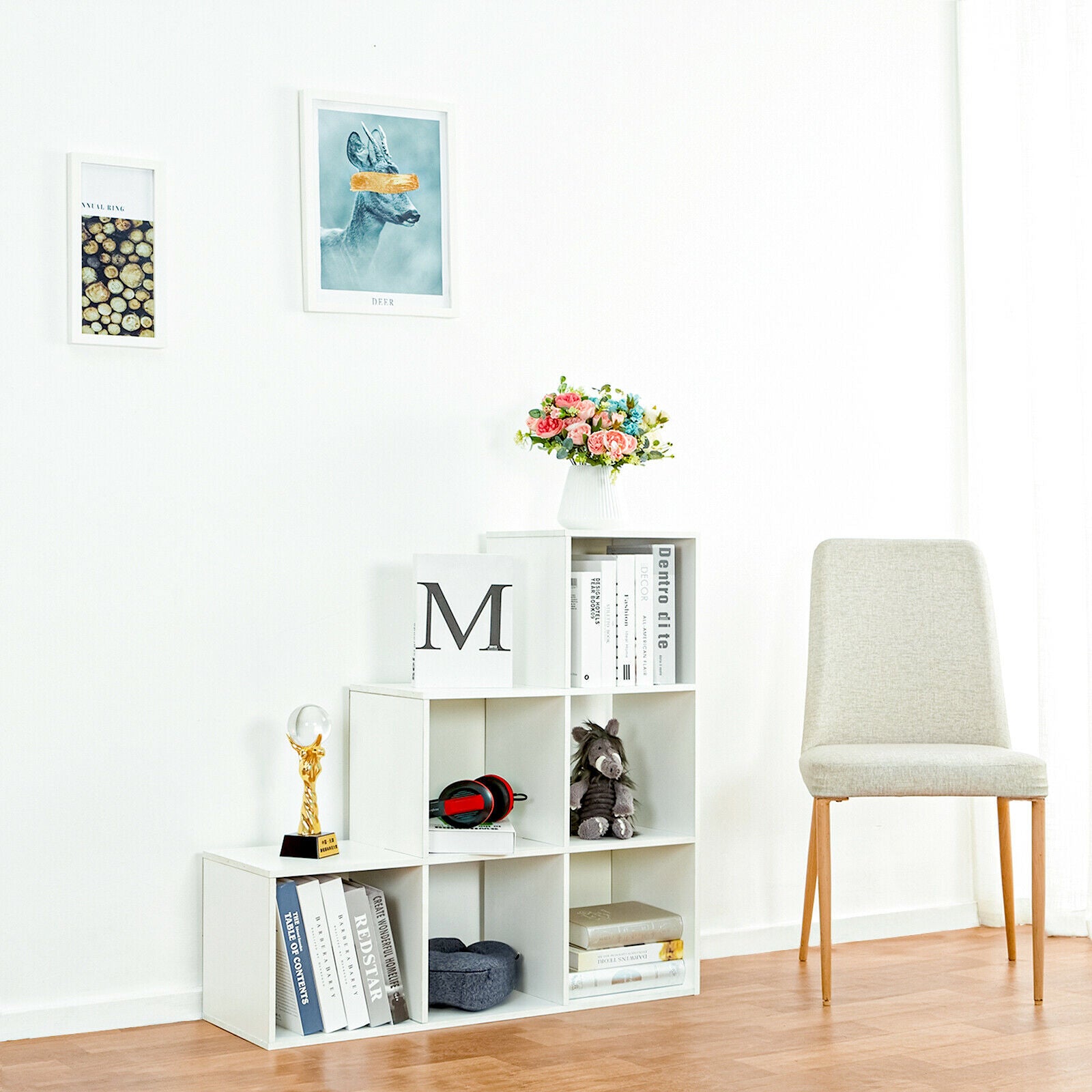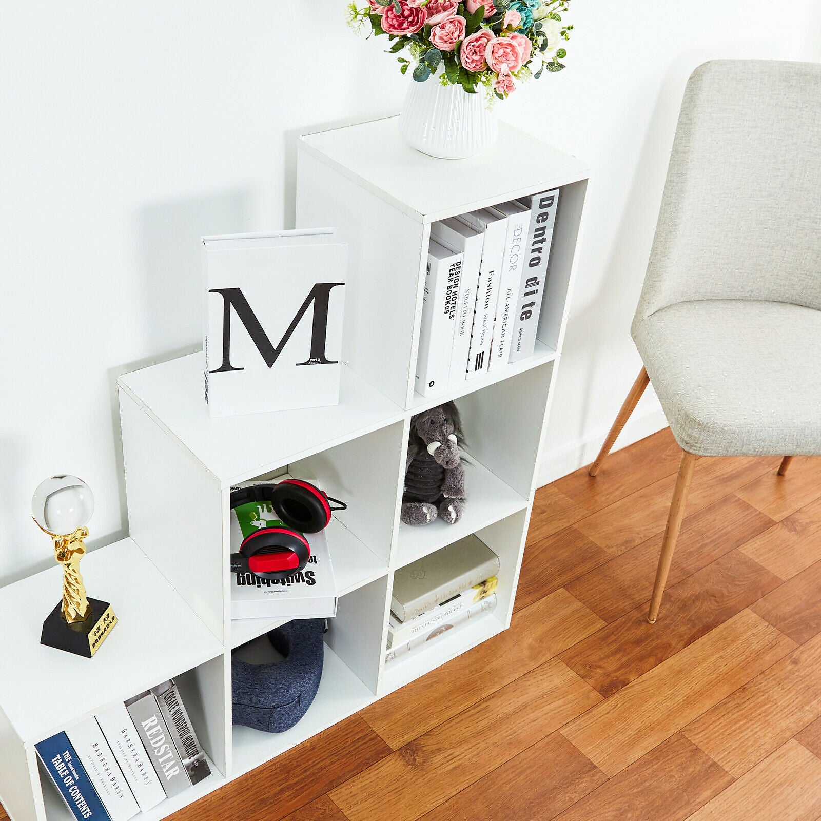 White Wood Bookcase Bookshelf 6 Tier S Shape Shelves Free Shelving Storage Unit