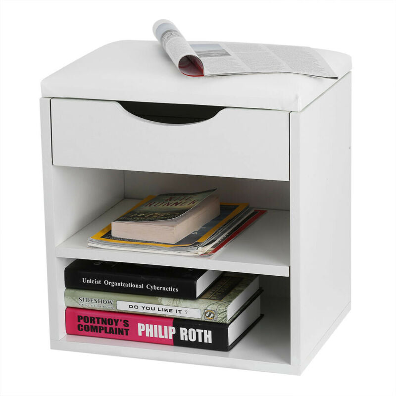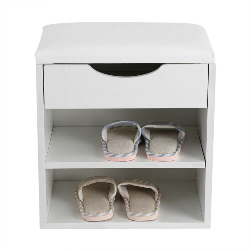 White Wooden Shoe Storage Bench Organizer Cabinet Padded Stool Seat Furniture