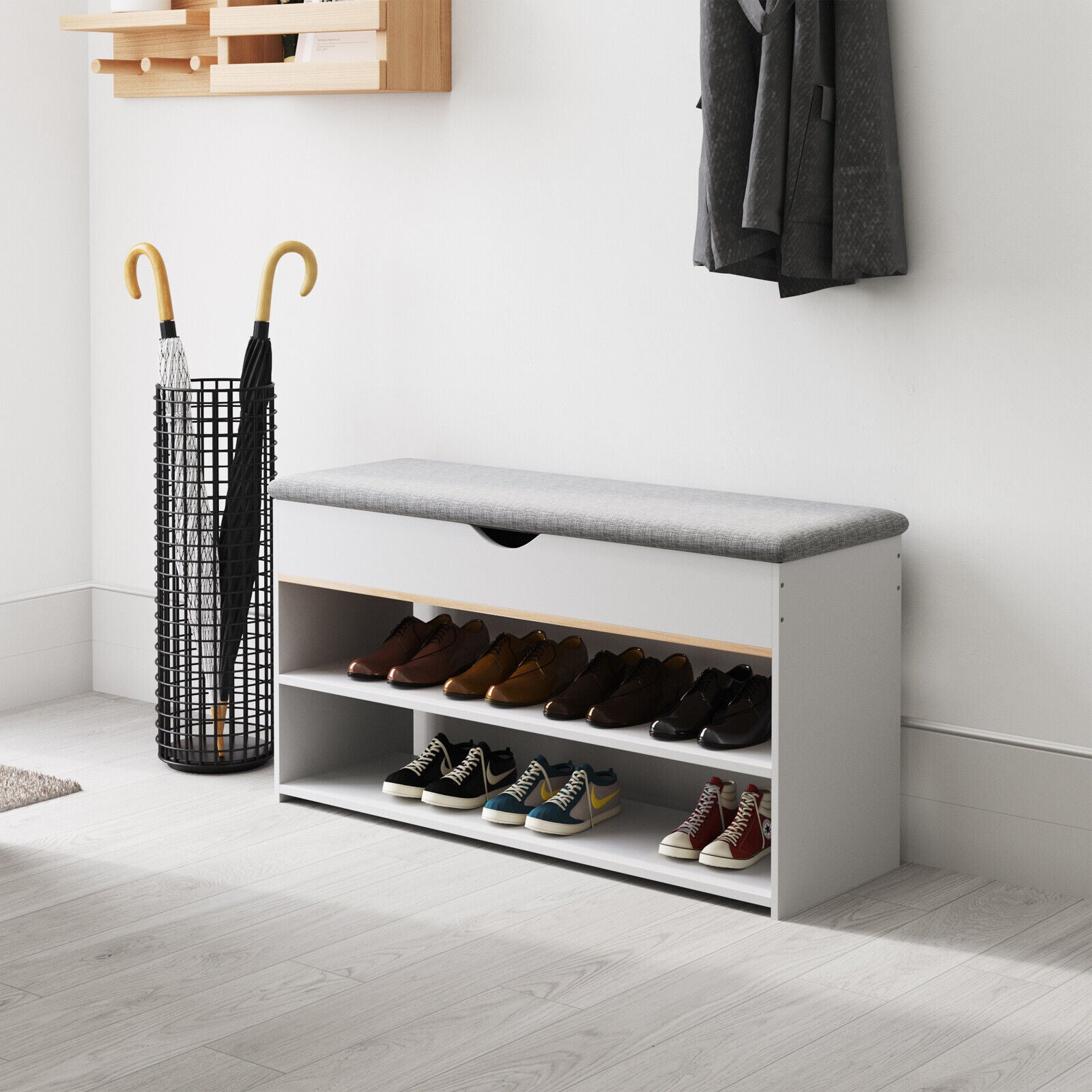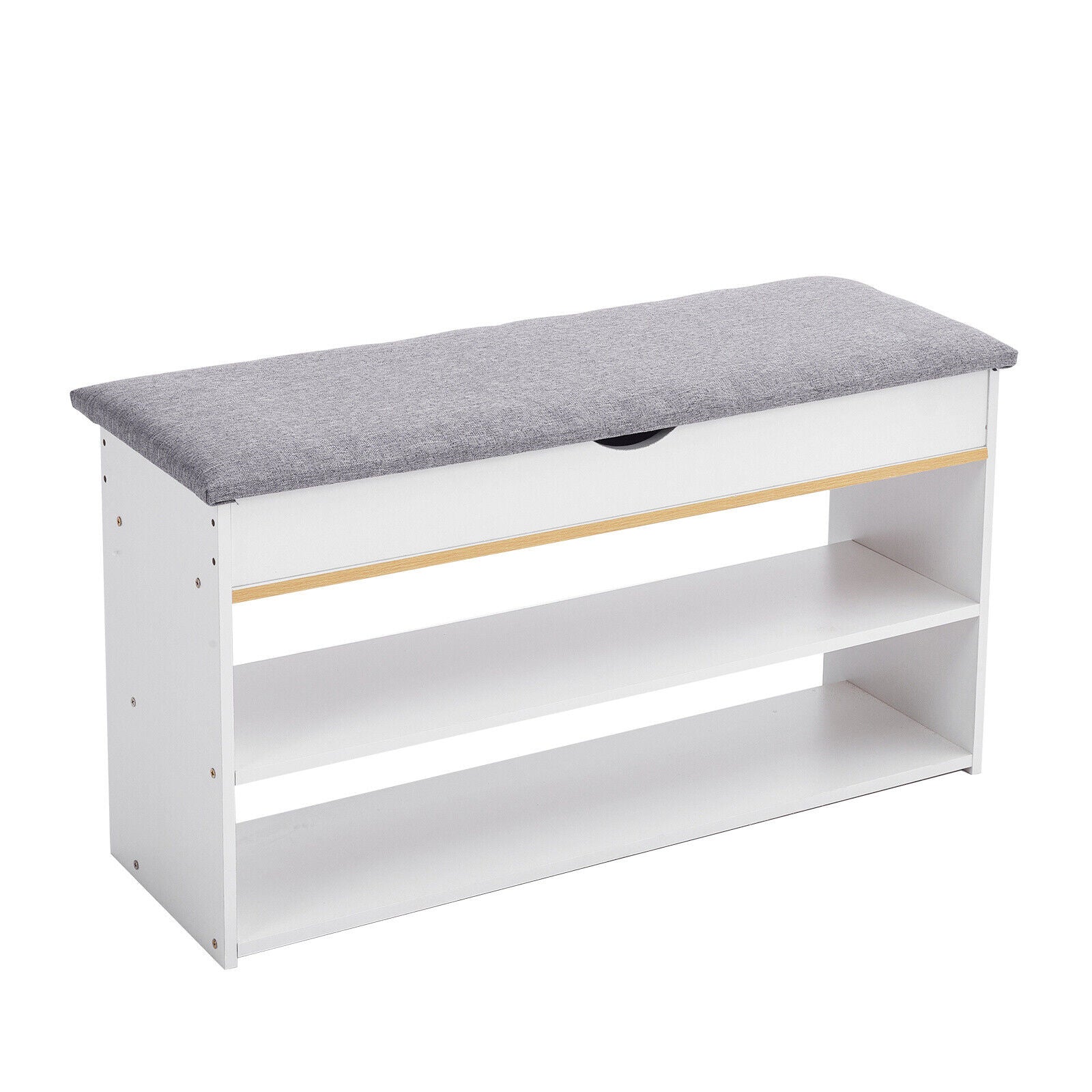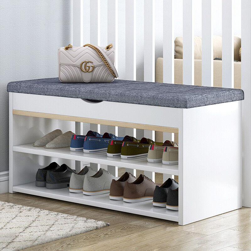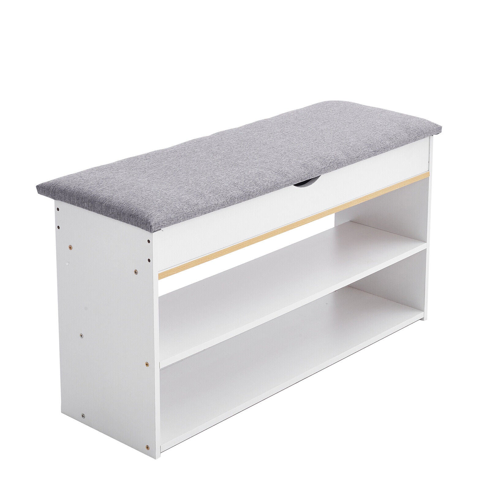 White Wooden Slim Shoe Rack Storage Shelf Unit Stand Cabinet Toy Box Bench Seat
