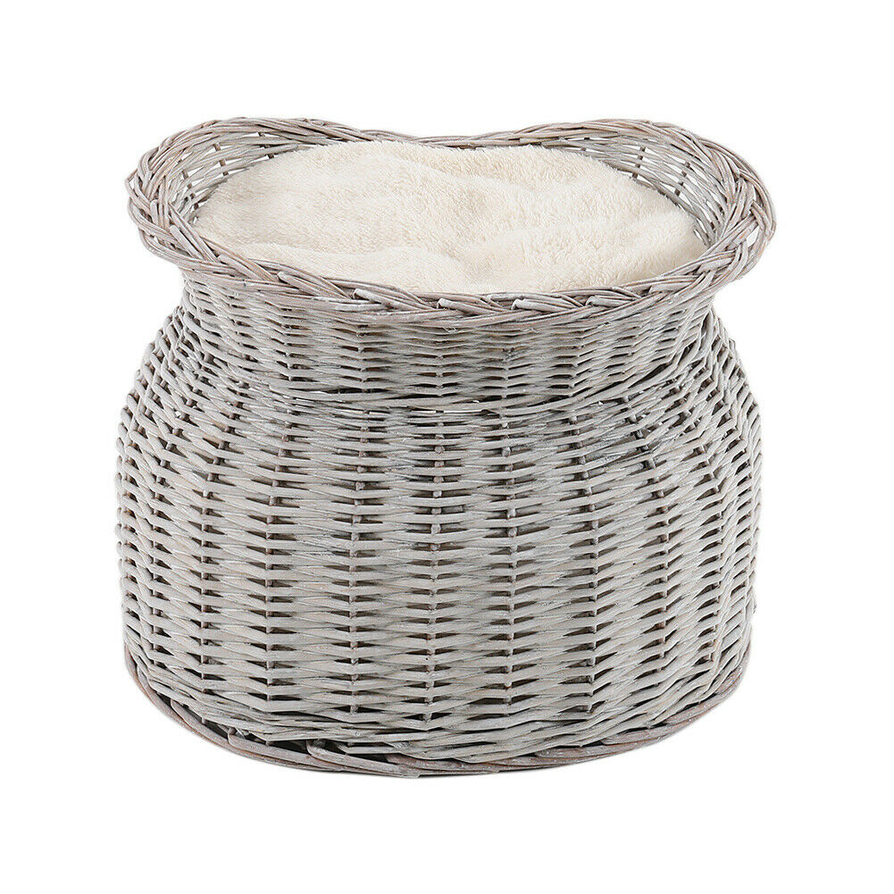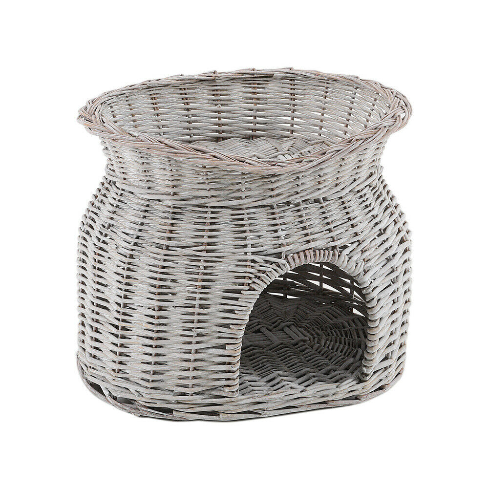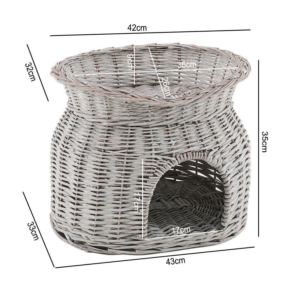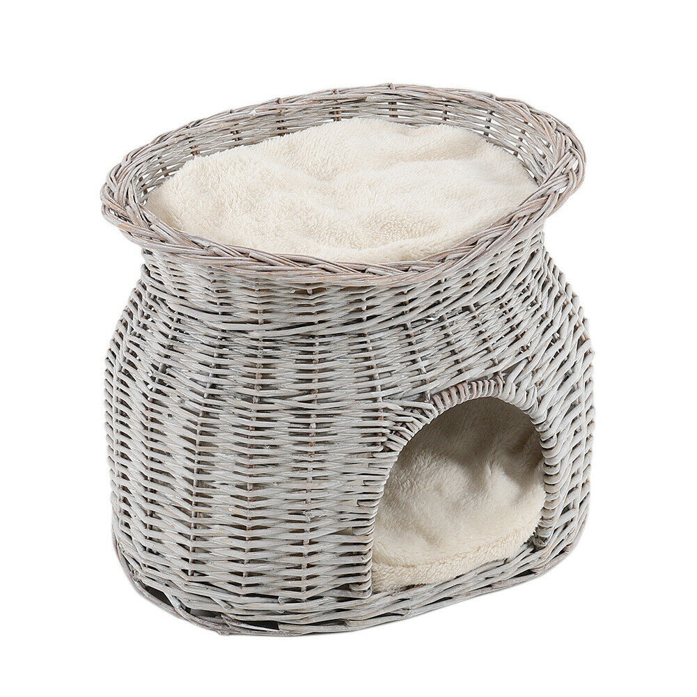Wicker Handmade Willow 2Tier Bunk Basket Pet Cat Pup Bed House w/ 2 Soft Cushion
