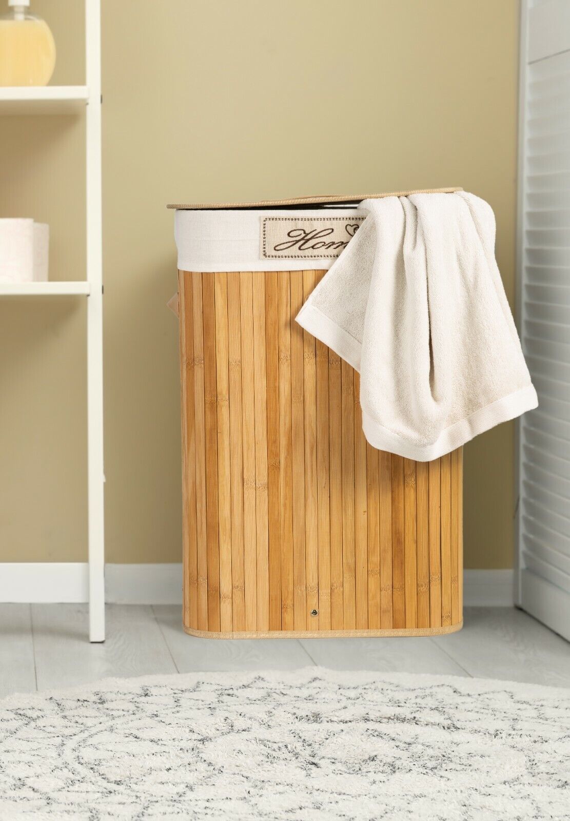 Bamboo Laundry Basket Clothes Storage Bag Sorter With Lid