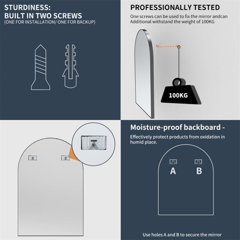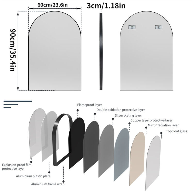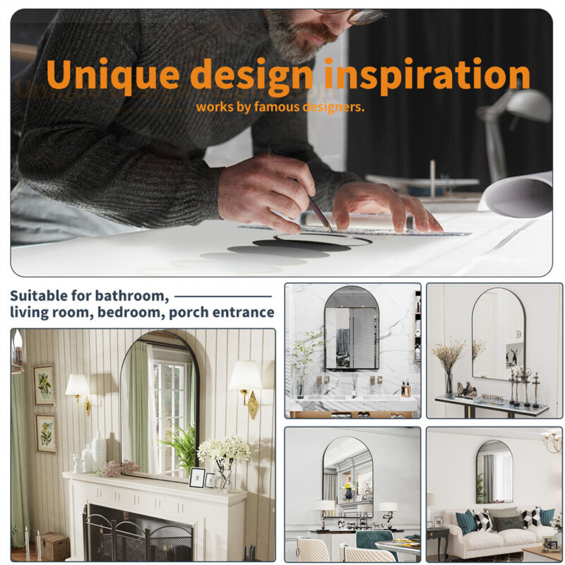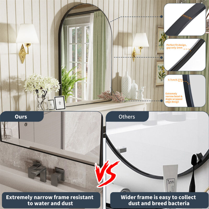 Window Shape Wall Mounted Mirror Bathroom Bedroom Makeup Dressing Mirror Black