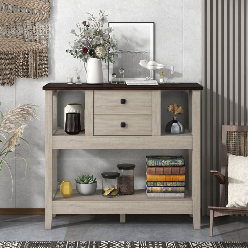 Windsor Console Table 2 Drawers Hallway Shelf Storage Cabinet Wooden Desk White